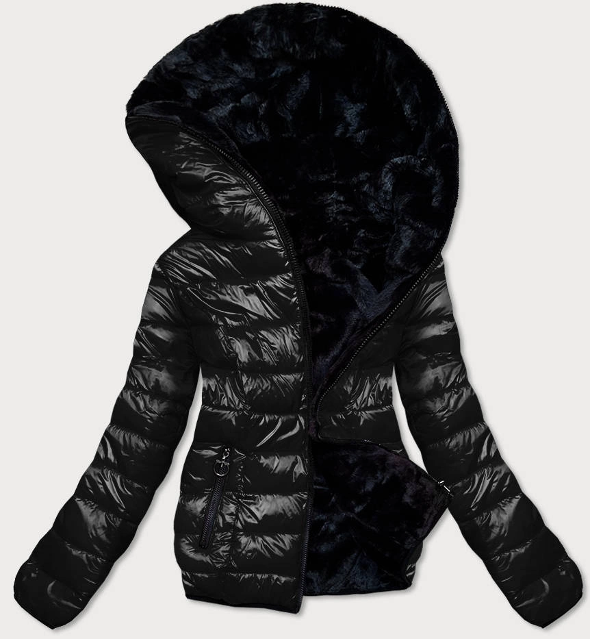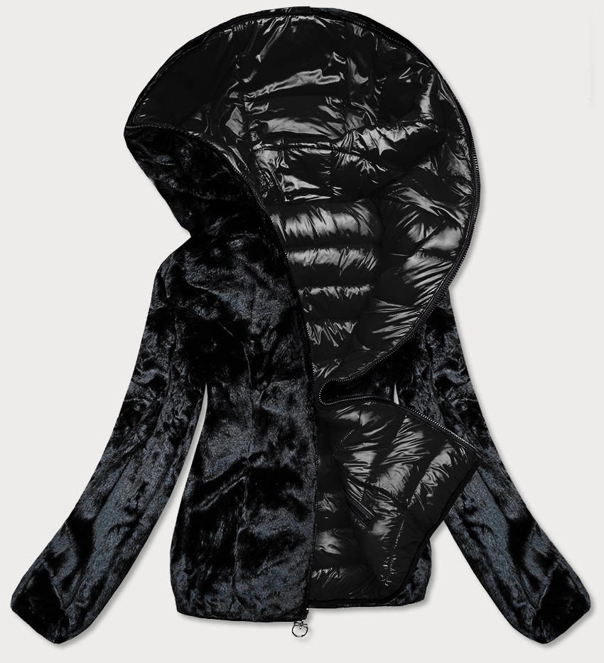 KRÓTKA DWUSTRONNA KURTKA DAMSKA ZIMOWA CZARNA (B9580-101)