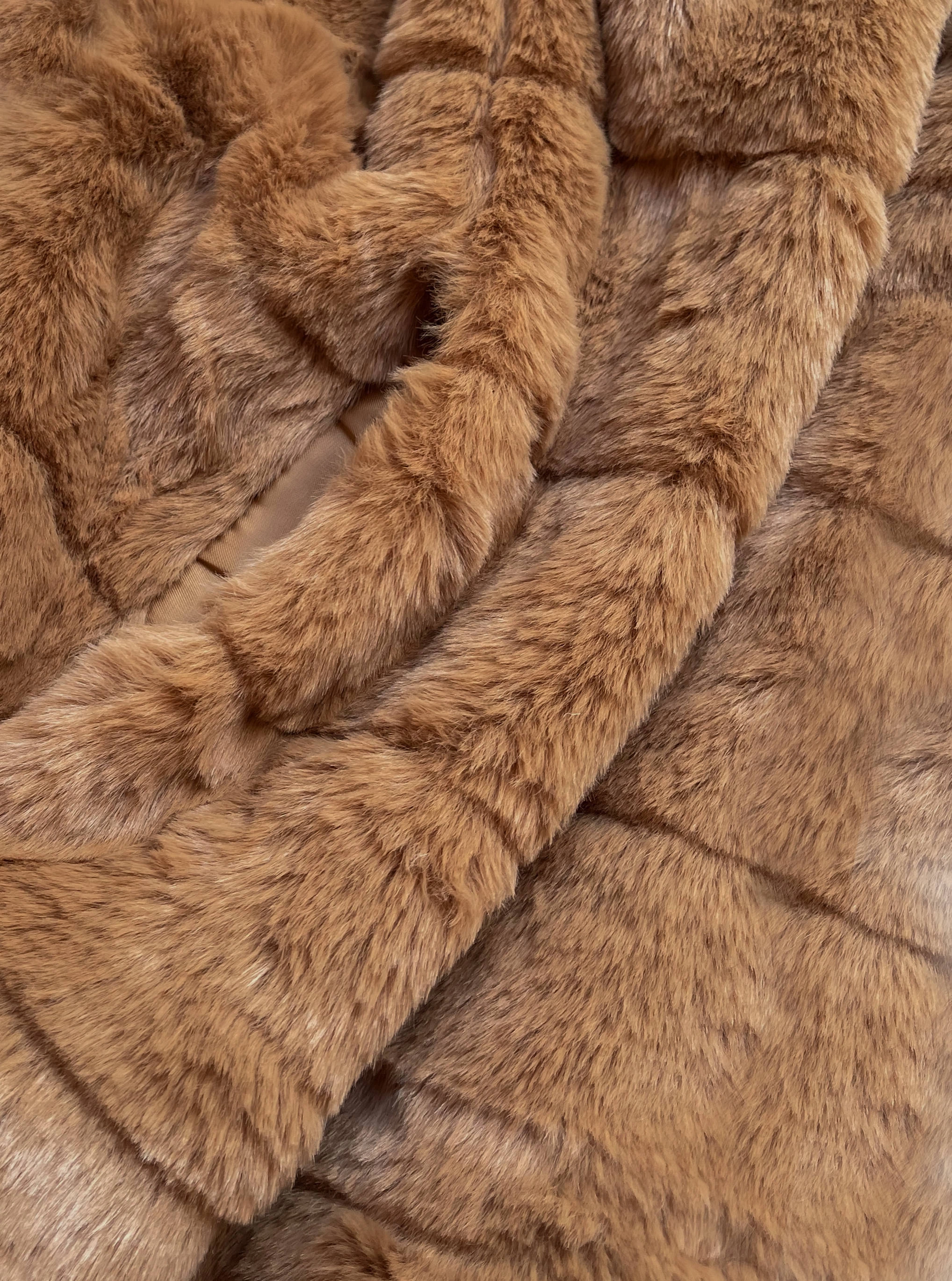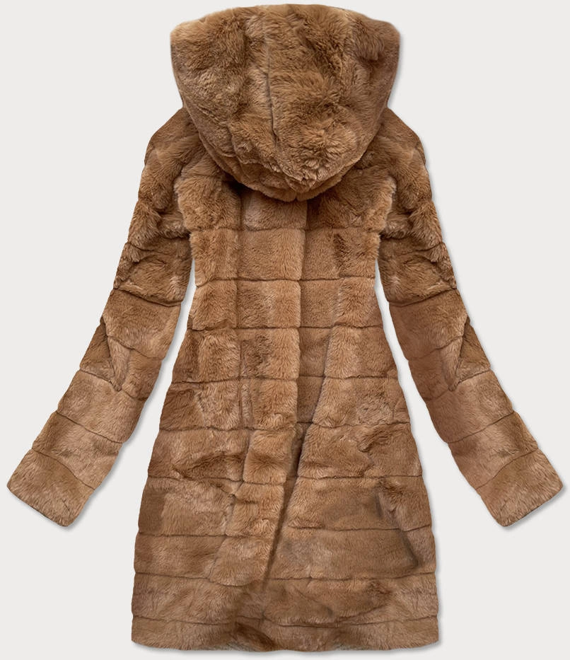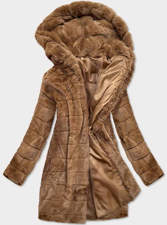 KURTKA DAMSKA FUTRO Z KAPTUREM BRĄZOWA (BR9746-12)