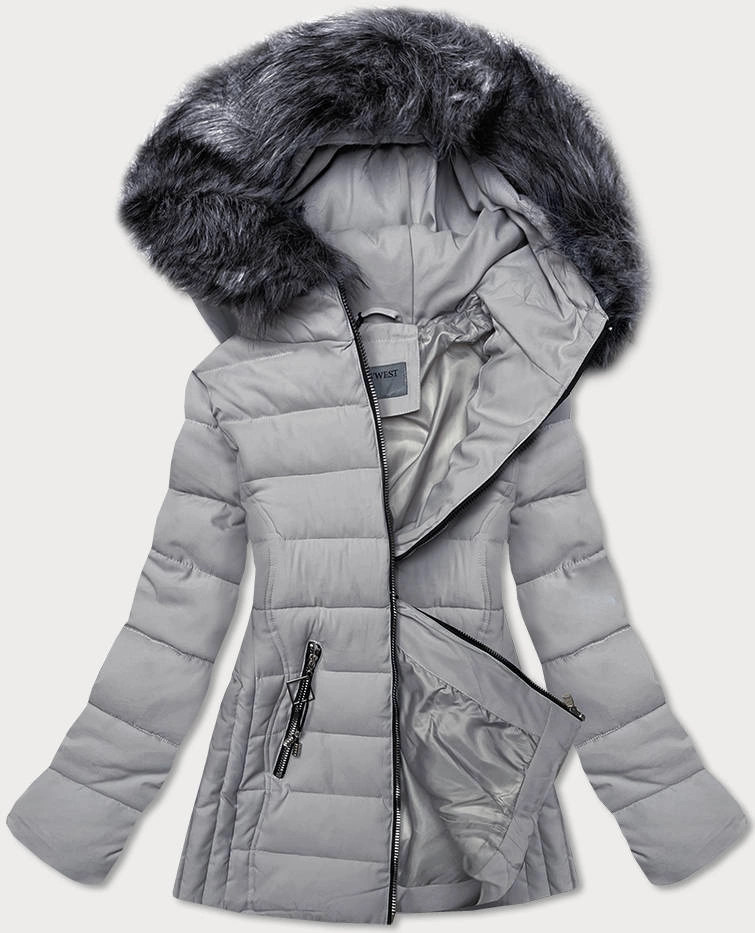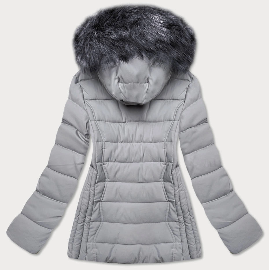 PIKOWANA KURTKA ZIMOWA Z KAPTUREM SZARA (B9526-9)