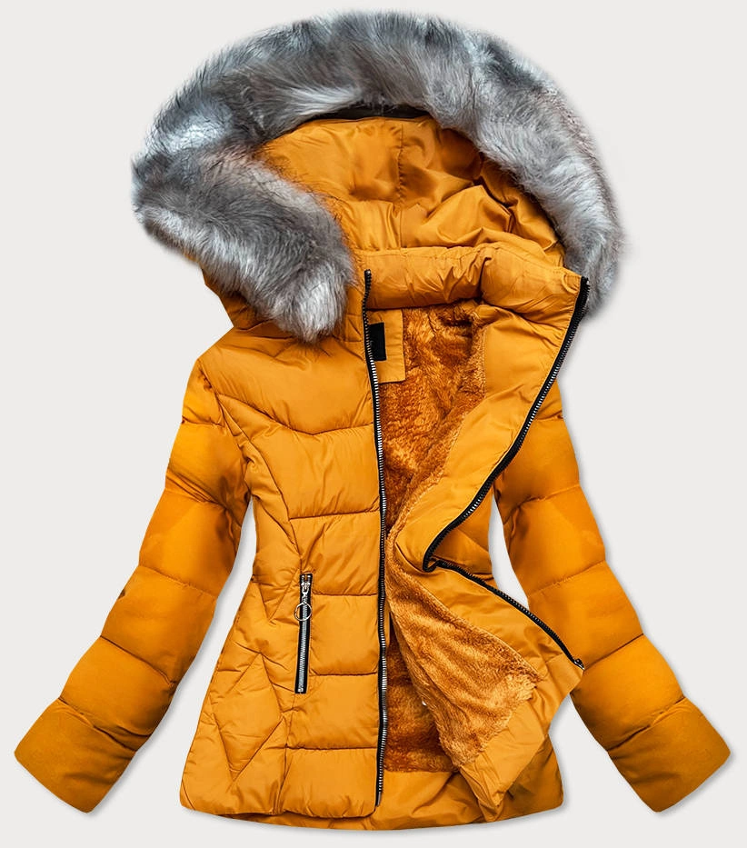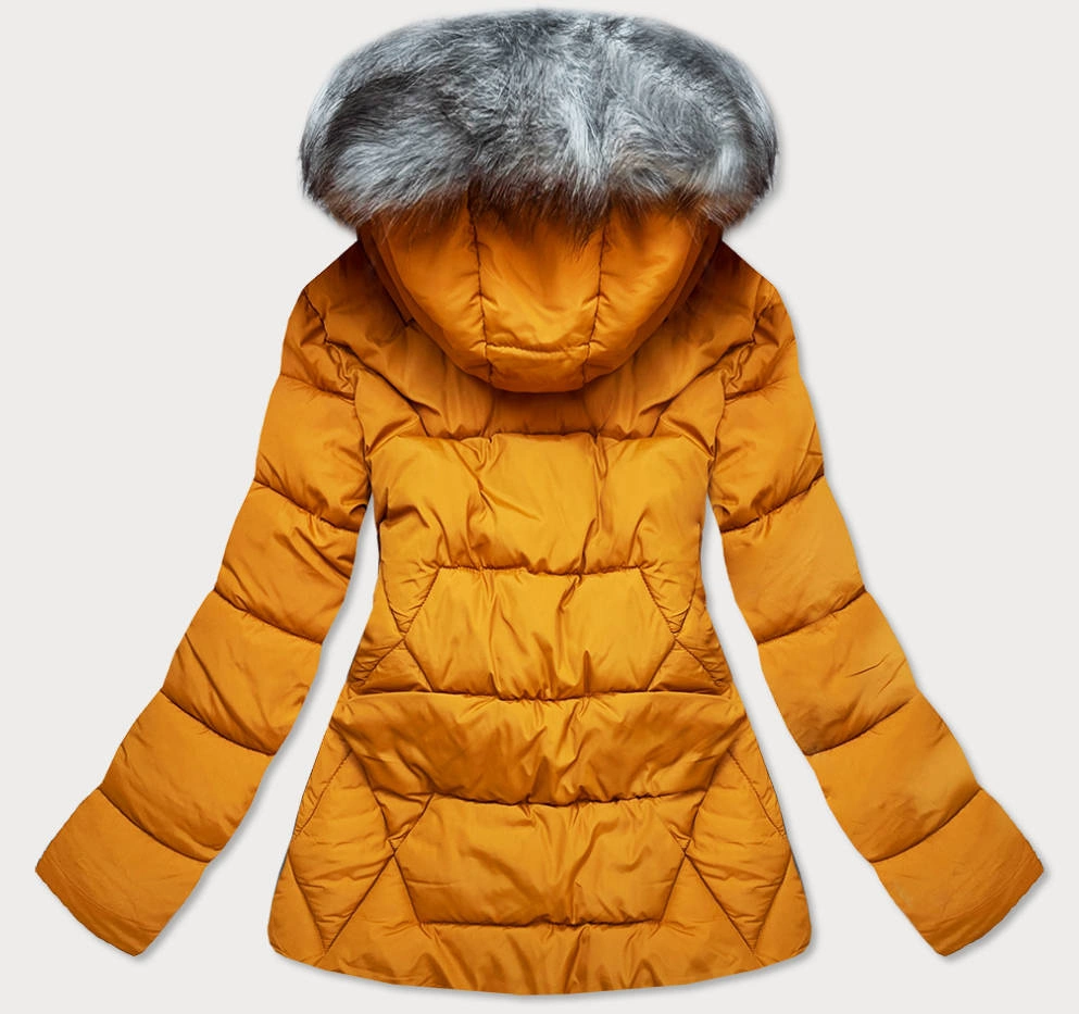 PIKOWANA KURTKA ZIMOWA Z KAPTUREM ŻÓŁTA (R-9903)