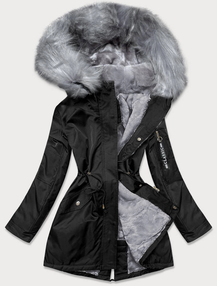 PARKA DAMSKA ZIMOWA Z FUTERKIEM CZARNY-SZARY (B532-1070)