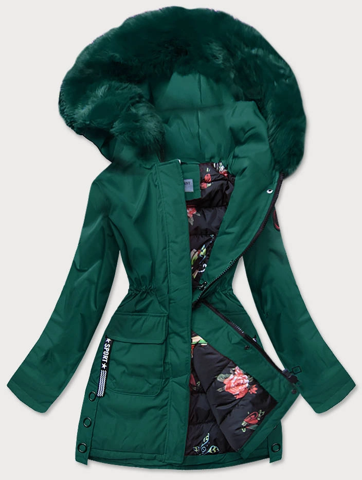 KURTKA ZIMOWA DAMSKA Z OZDOBNĄ PODSZEWKĄ ZIELONA (B9576-10)