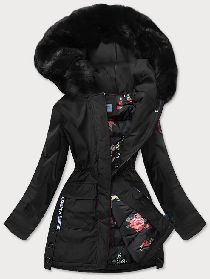 KURTKA ZIMOWA DAMSKA Z OZDOBNĄ PODSZEWKĄ CZARNA (B9576-1)