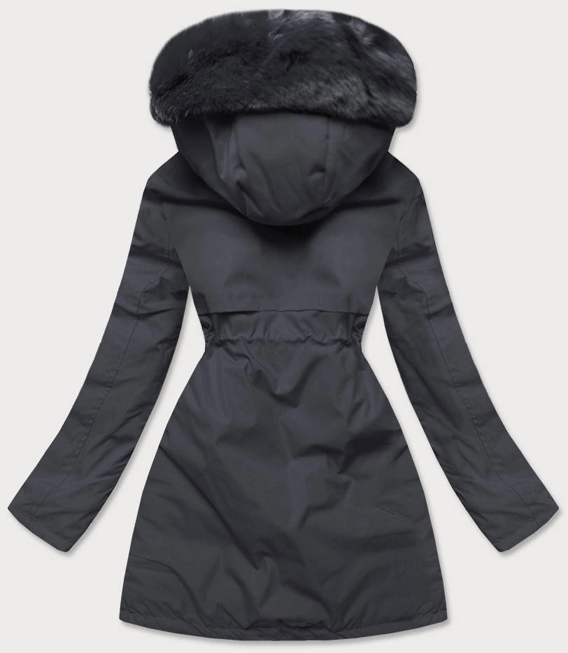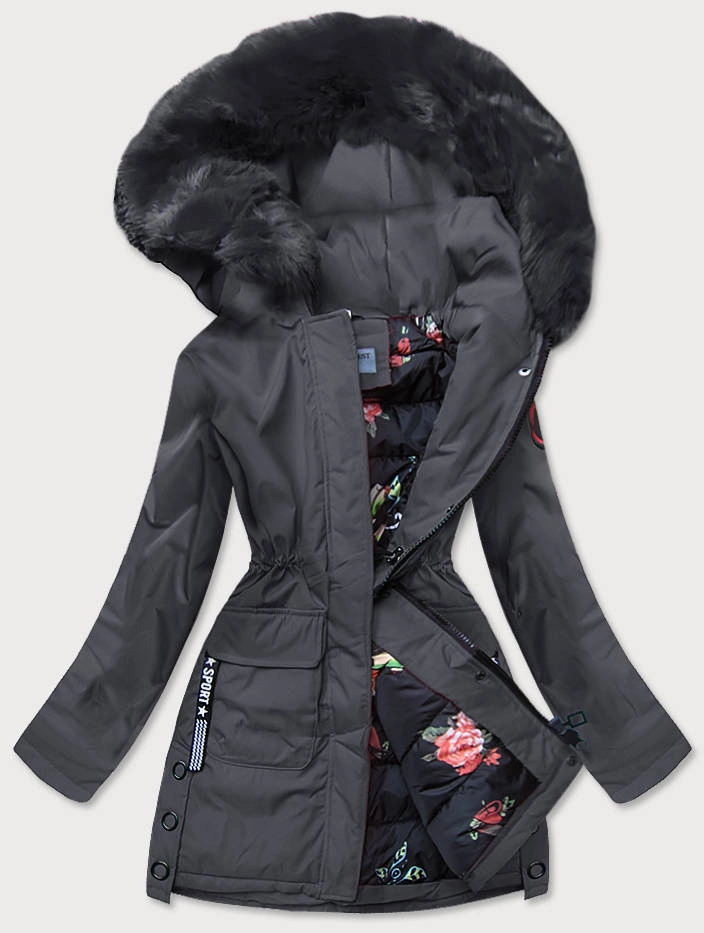 KURTKA ZIMOWA DAMSKA Z OZDOBNĄ PODSZEWKĄ GRAFITOWA (B9576-70)