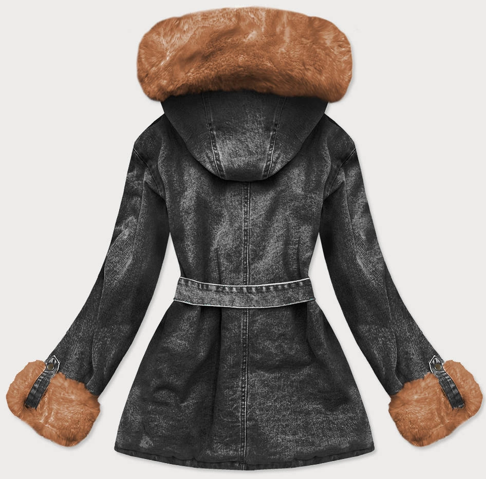 DAMSKA KURTKA JEANSOWA Z FUTRZANĄ PODSZEWKĄ CZARNO - KARMELOWA (9026#)