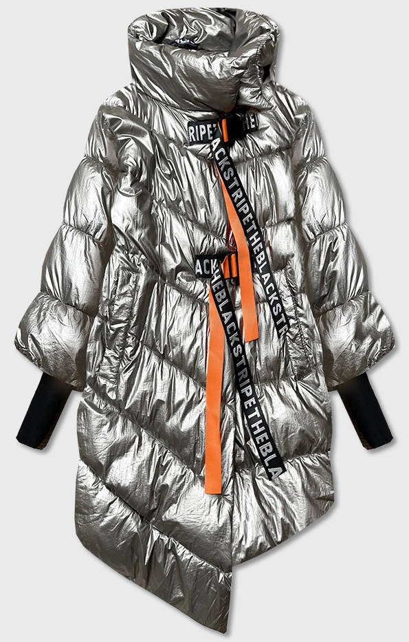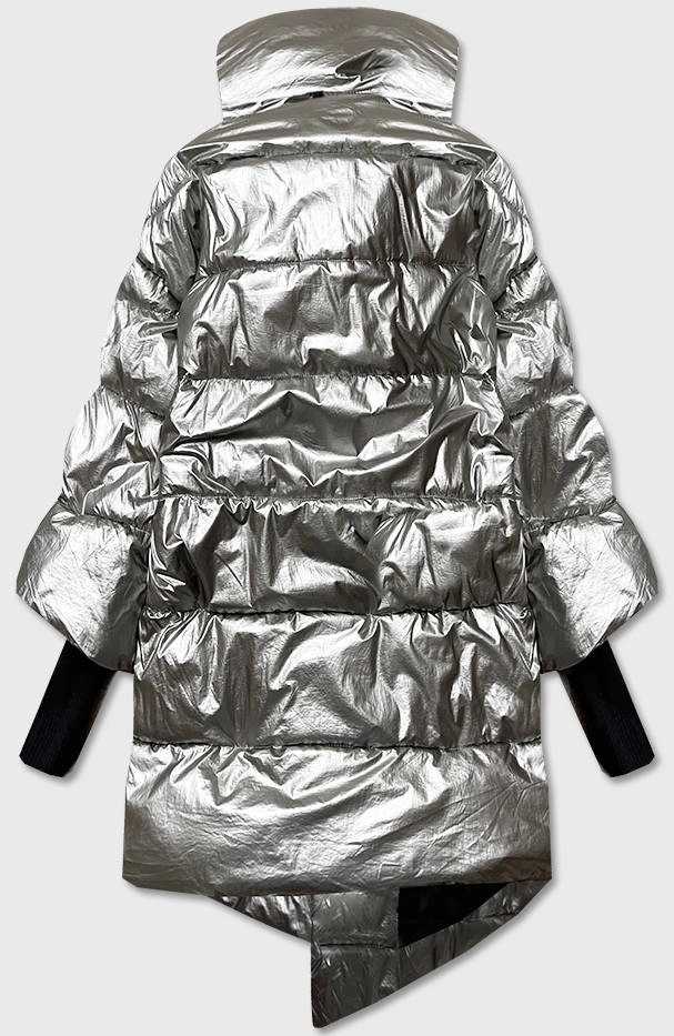 BŁYSZCZĄCA KURTKA DAMSKA OVERSIZE SREBRNA (737ART)