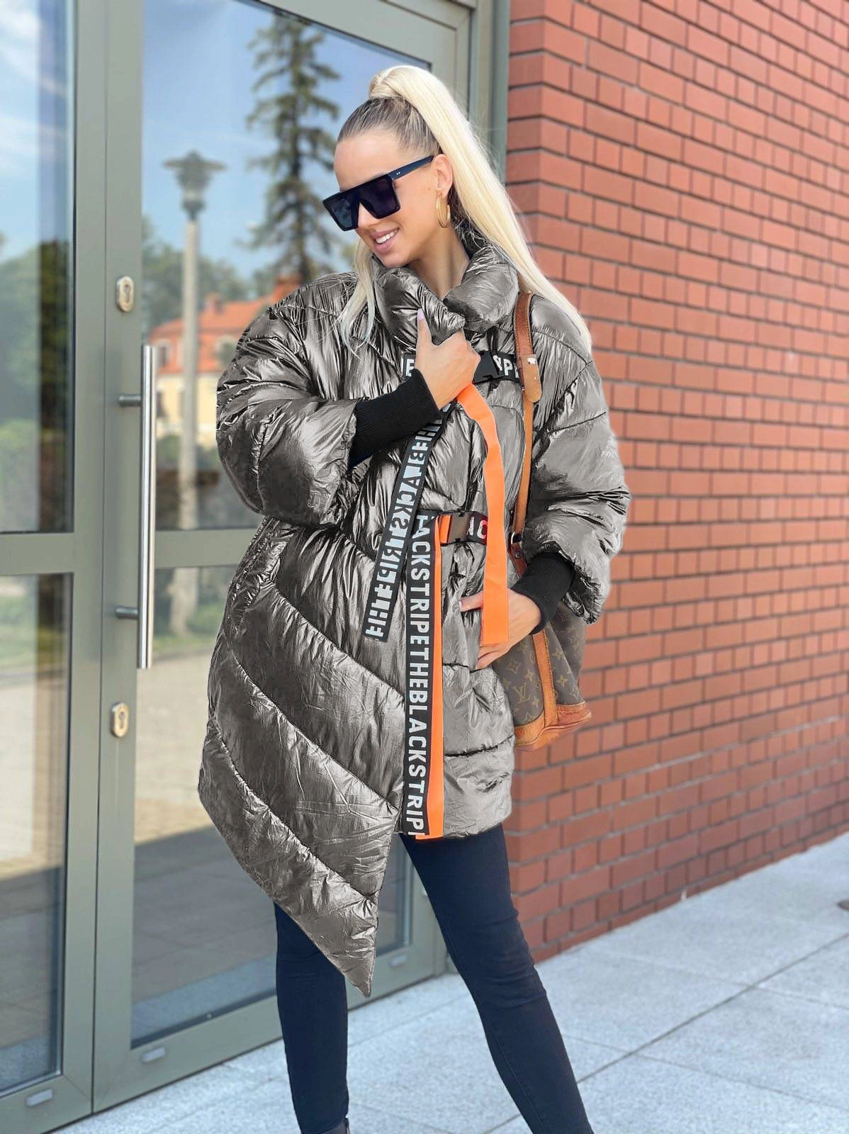 Opinie o BŁYSZCZĄCA KURTKA DAMSKA OVERSIZE SREBRNA (737ART)