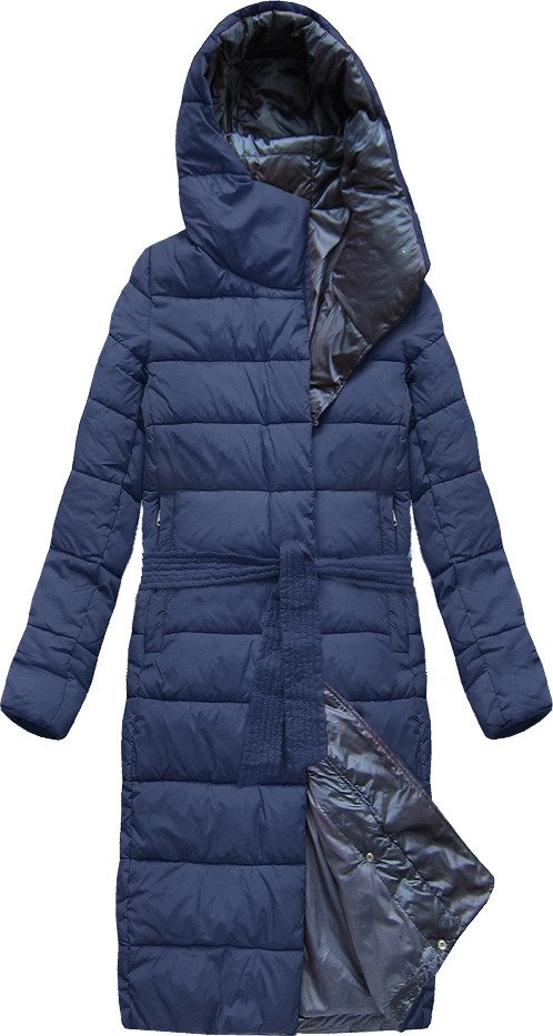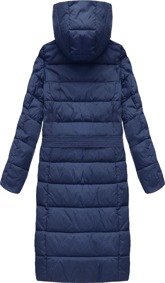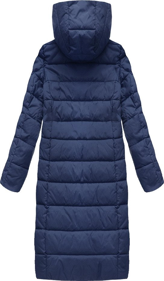 ZIMOWA DŁUGA PIKOWANA KURTKA DAMSKA GRANATOWA (7704BIG)