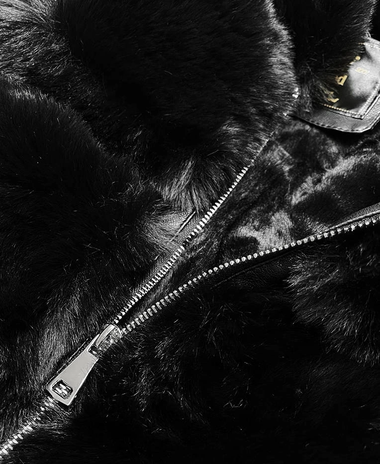 RAMONESKA Z FUTRZANYM KAPTUREM CZARNA (5543)