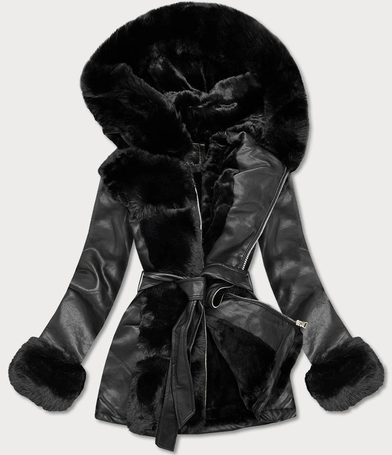 RAMONESKA Z FUTRZANYM KAPTUREM CZARNA (5543BIG)