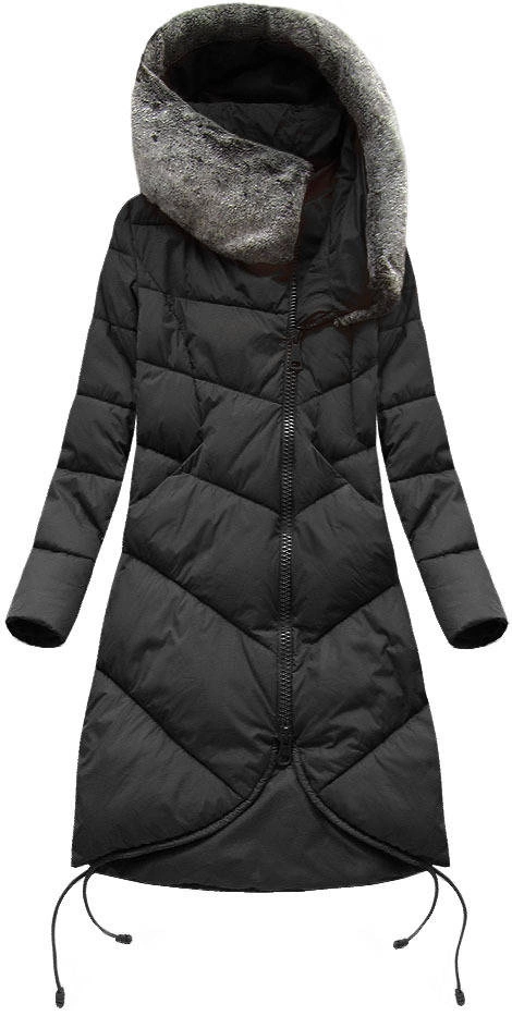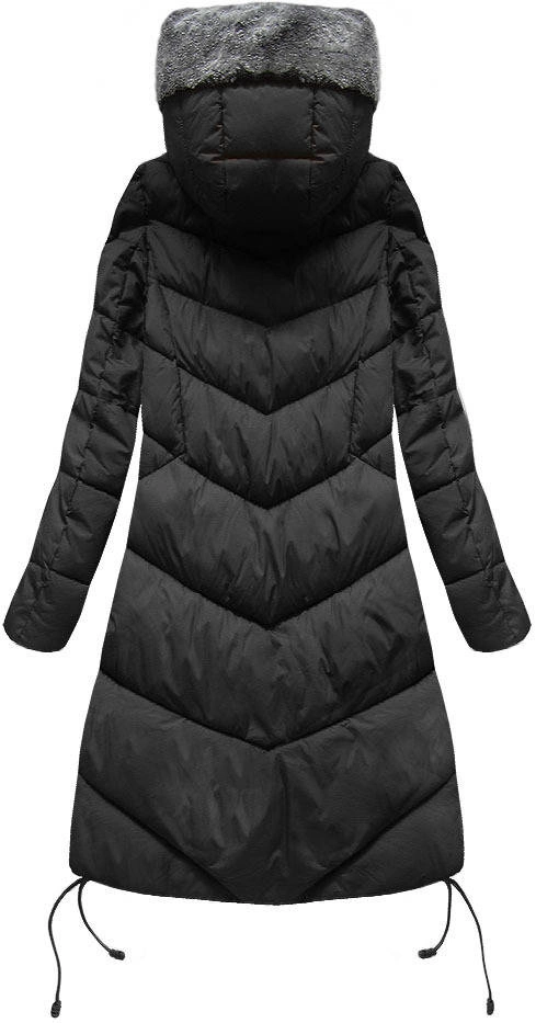 Opinie o Długa kurtka zimowa z kapturem czarna (7755BIG)