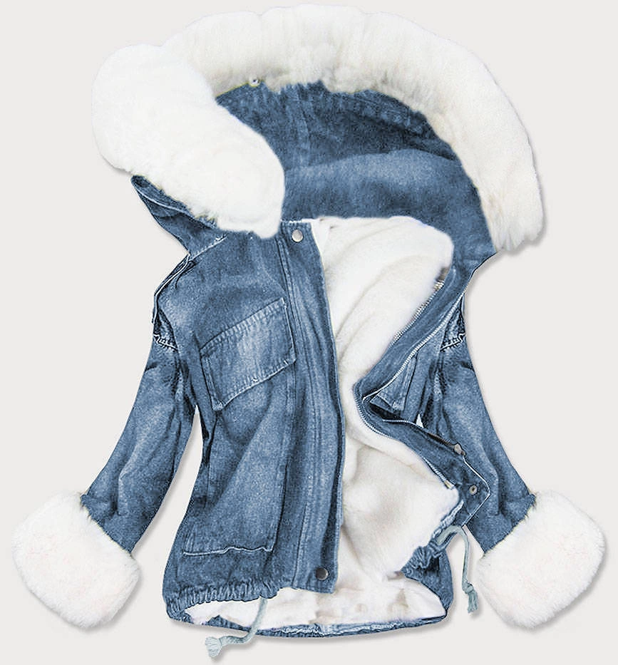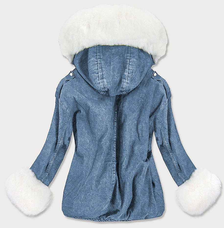 DAMSKA KURTKA JEANSOWA Z FUTRZANĄ PODPINKĄ NIEBIESKO - BIAŁA (9023#)