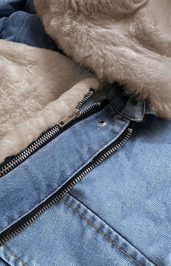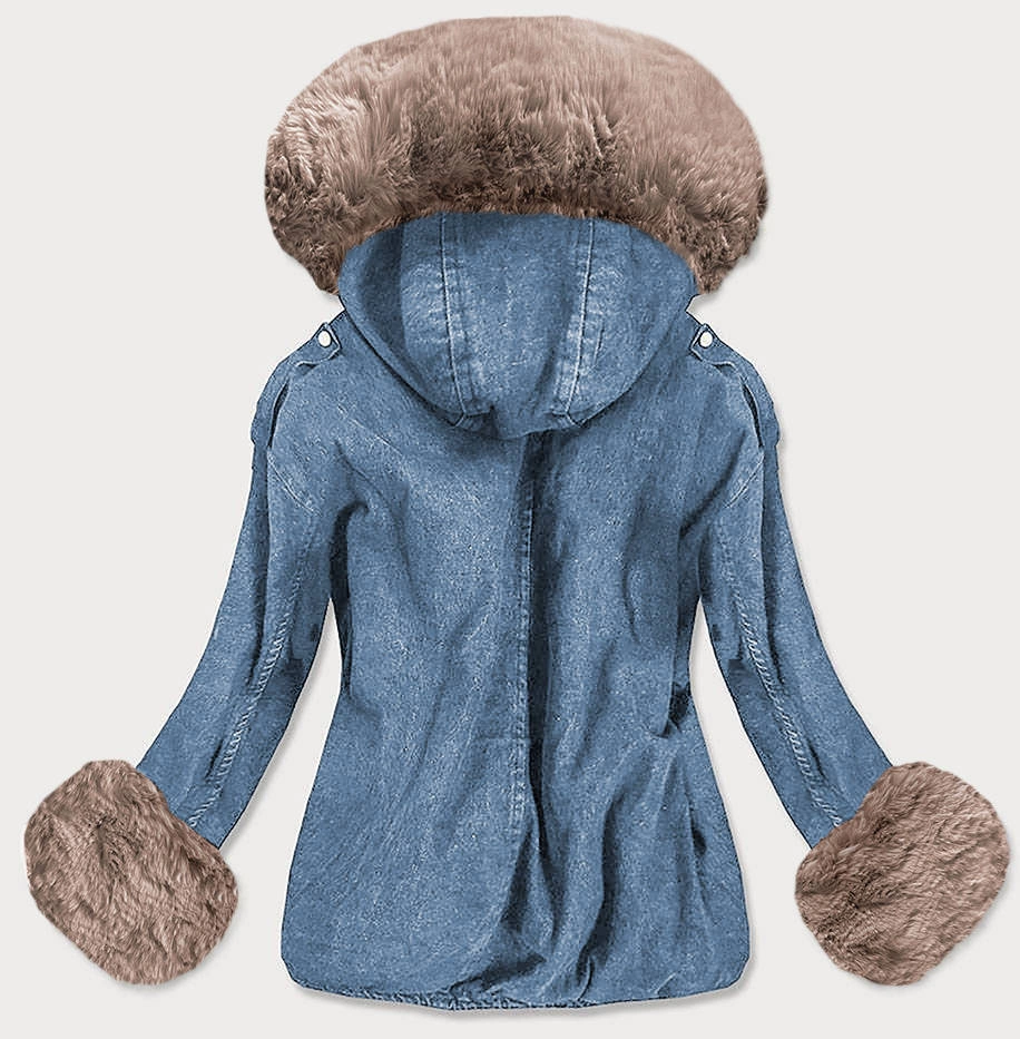 Opinie o DAMSKA KURTKA JEANSOWA Z FUTRZANĄ PODPINKĄ NIEBIESKO - BEŻOWA (9023#)