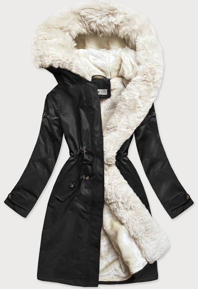 ZIMOWA DAMSKA PARKA BAWEŁNIANA CZARNA-ECRU (FM2103-B11)