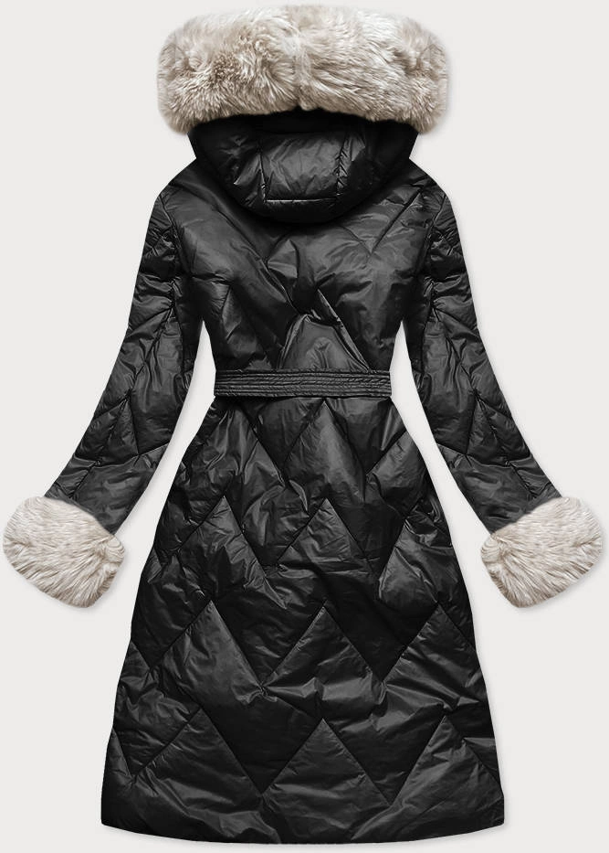 DAMSKA DŁUGA KURTKA PIKOWANA CZARNA-ECRU (772)