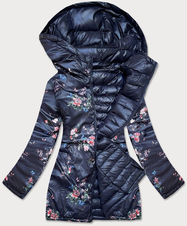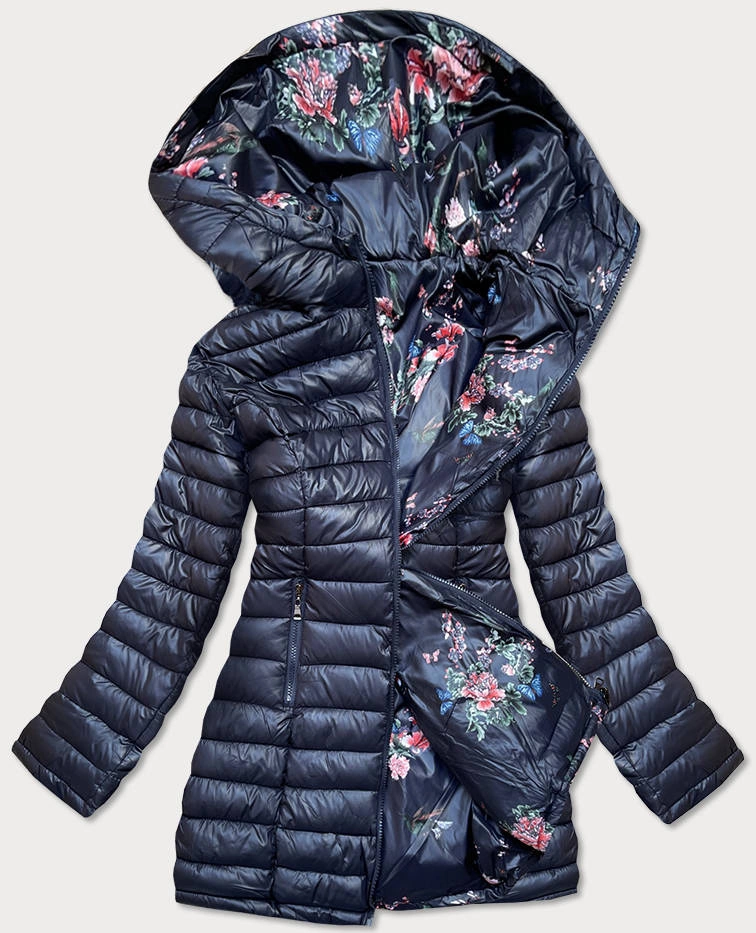 DWUSTRONNA KURTKA DAMSKA Z KAPTUREM GRANATOWA (8913-E)