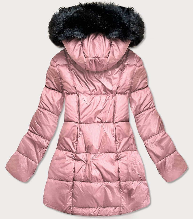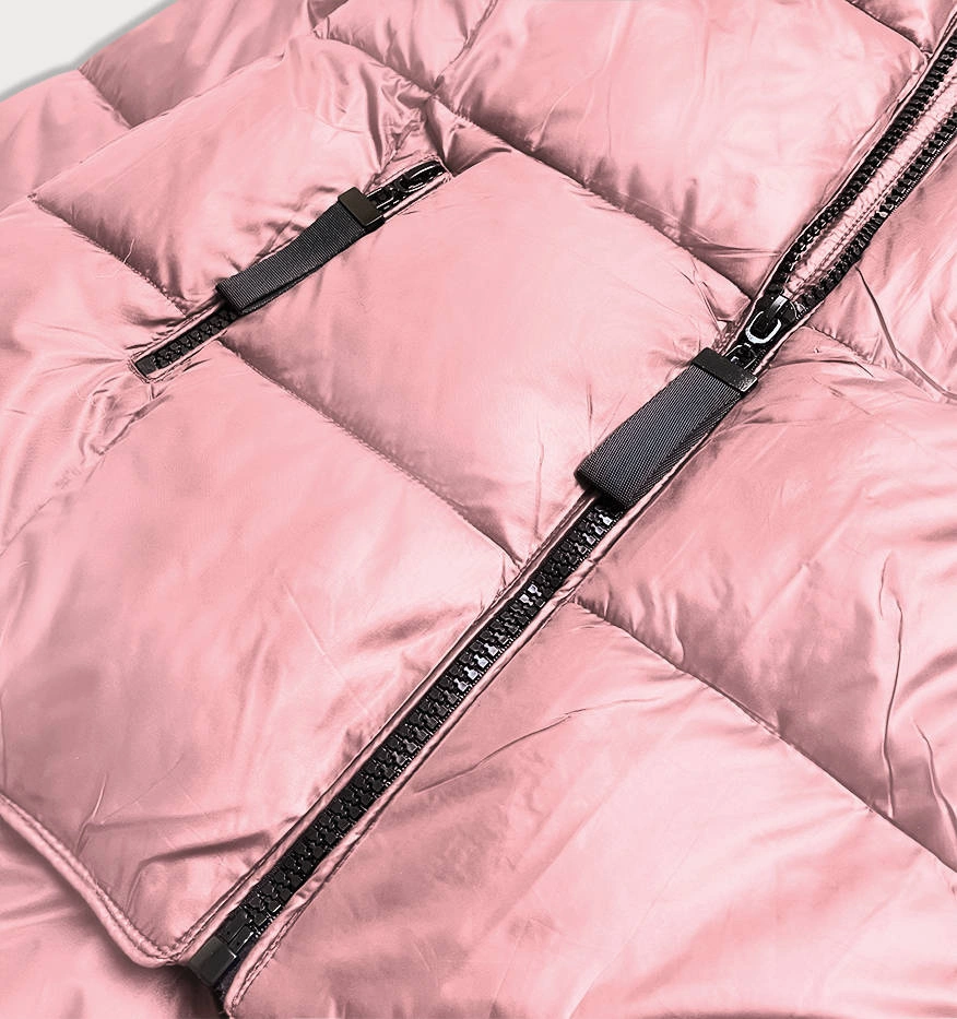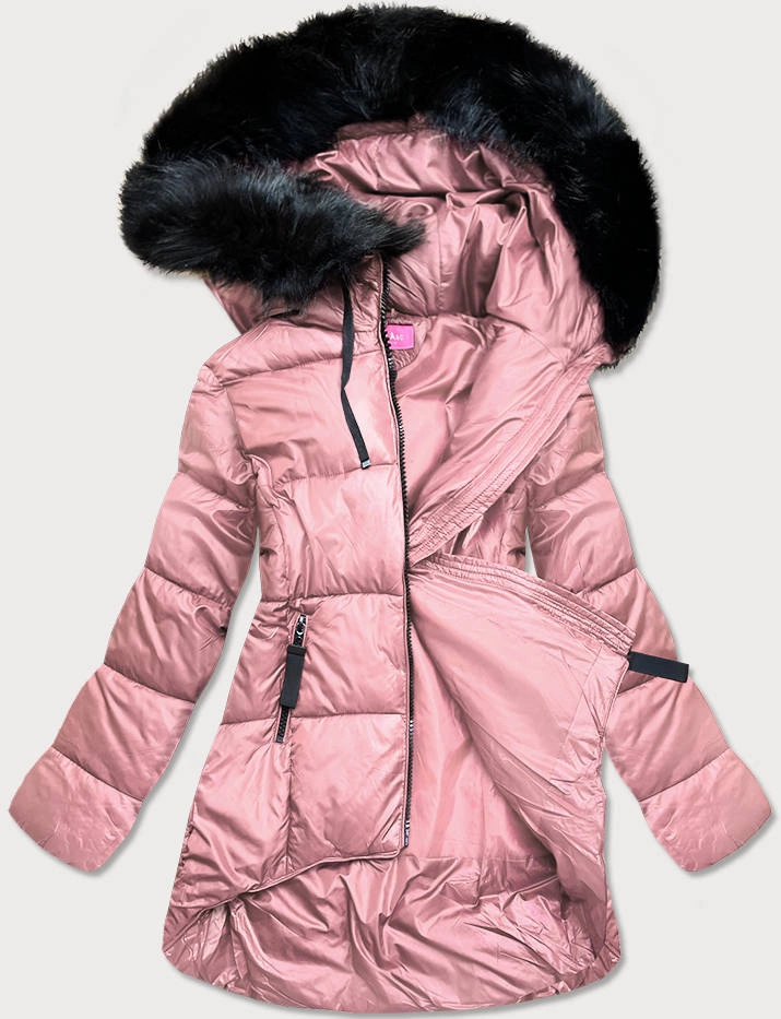 Asymetryczna kurtka damska zimowa różowa (8953-r)