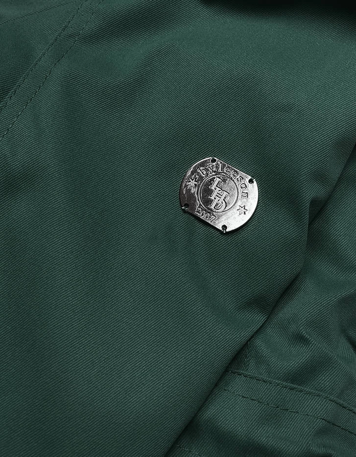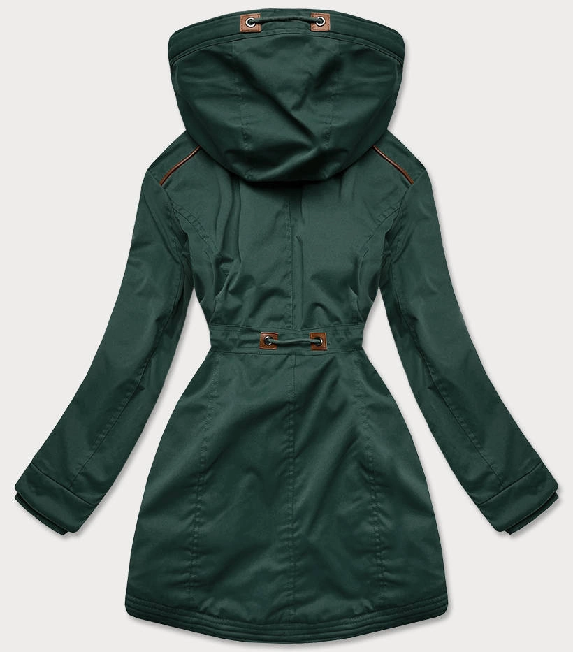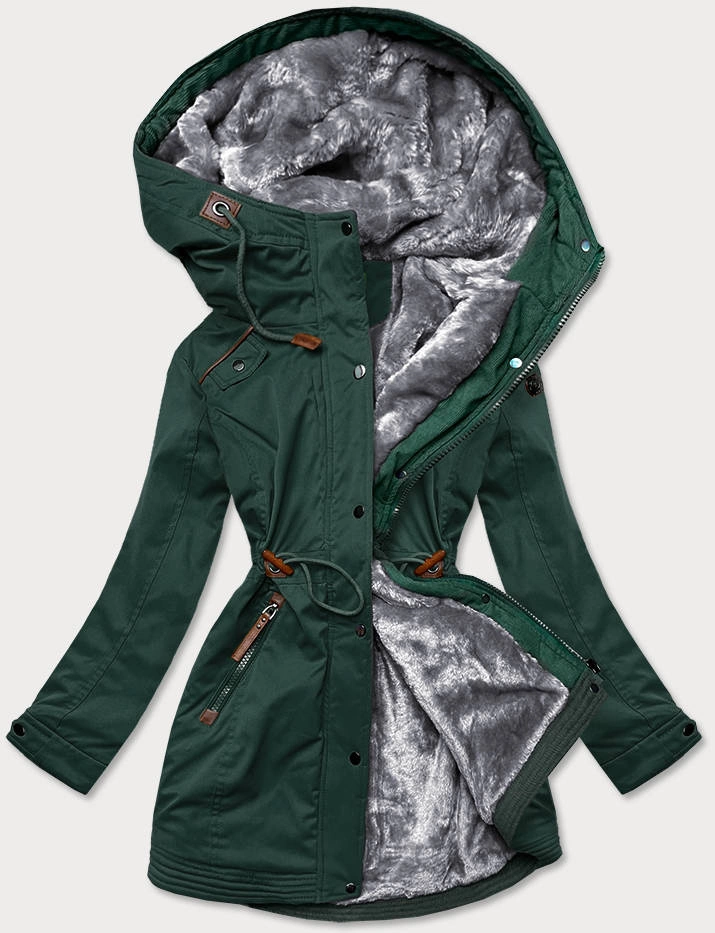 ZIMOWA PARKA DAMSKA Z WSTAWKAMI Z EKOSKÓRY BUTELKOWA ZIELEŃ (M-21A93)