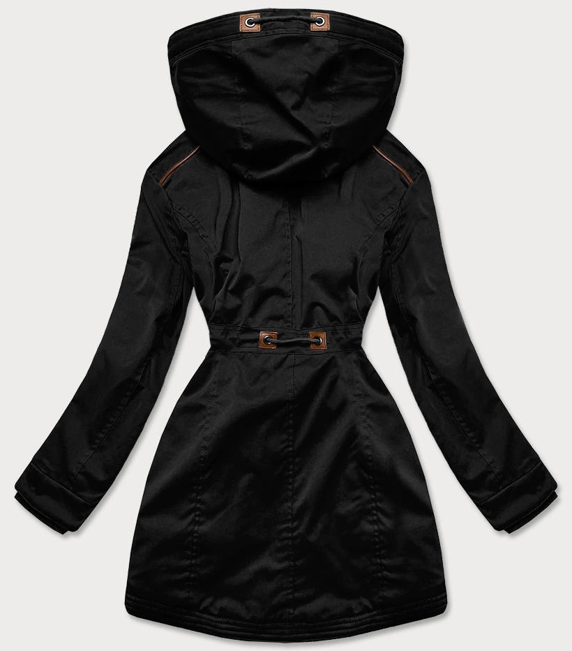 ZIMOWA PARKA DAMSKA Z WSTAWKAMI Z EKOSKÓRY CZARNA (M-21A93)