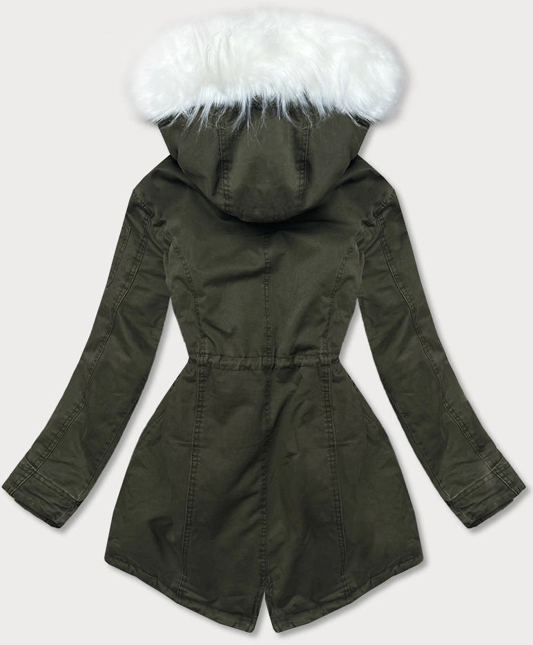 ZIMOWA PARKA DAMSKA KHAKI-BIAŁA (D-229#)
