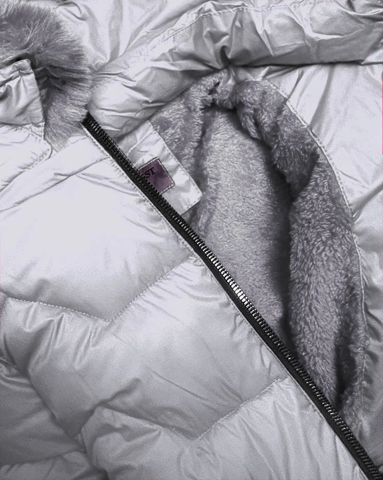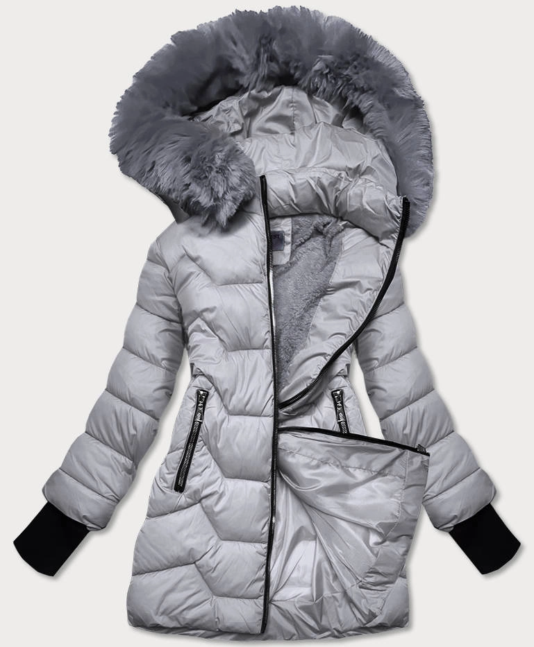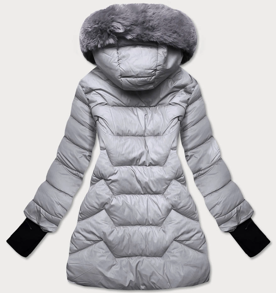 PIKOWANA KURTKA ZIMOWA Z KAPTUREM SZARA (B2719-9)