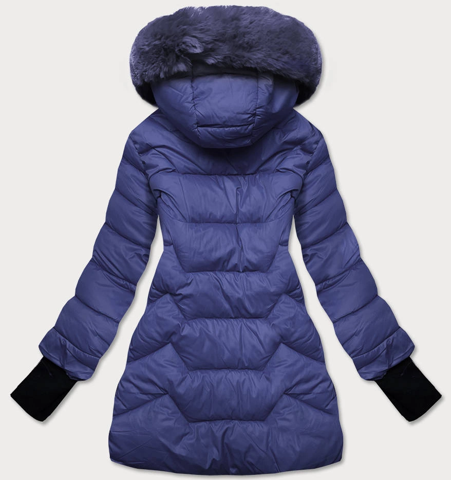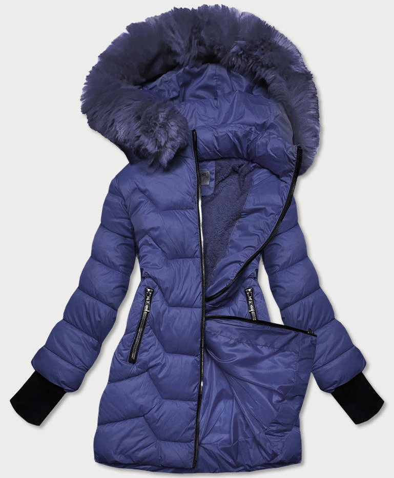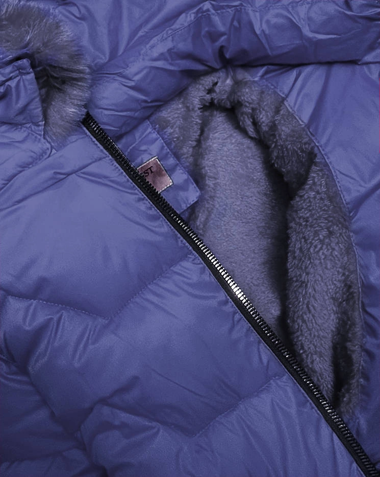 PIKOWANA KURTKA ZIMOWA Z KAPTUREM NIEBIESKA (B2719-72)