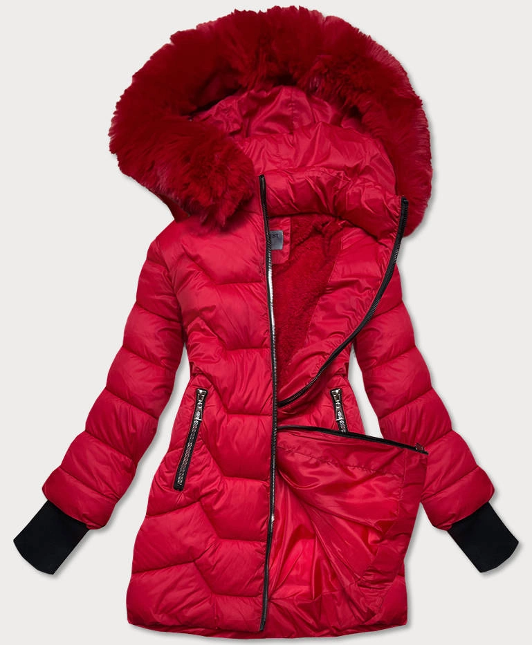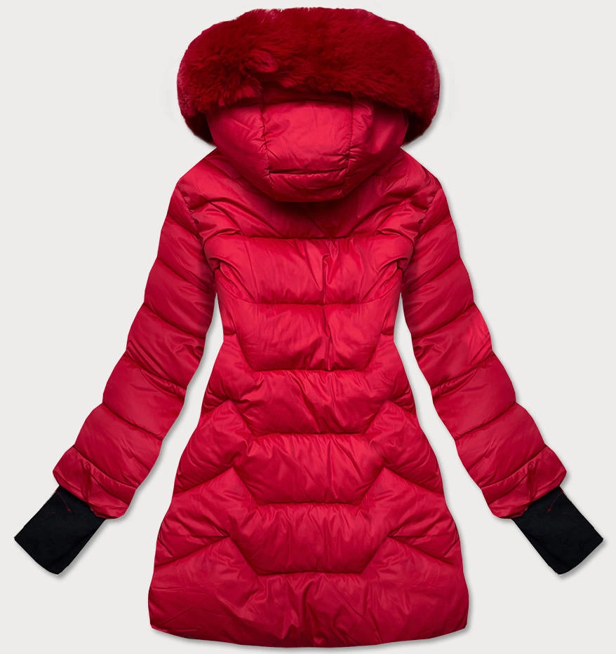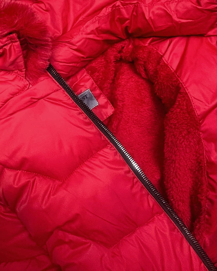 PIKOWANA KURTKA ZIMOWA Z KAPTUREM CZERWONA (B2719-4)