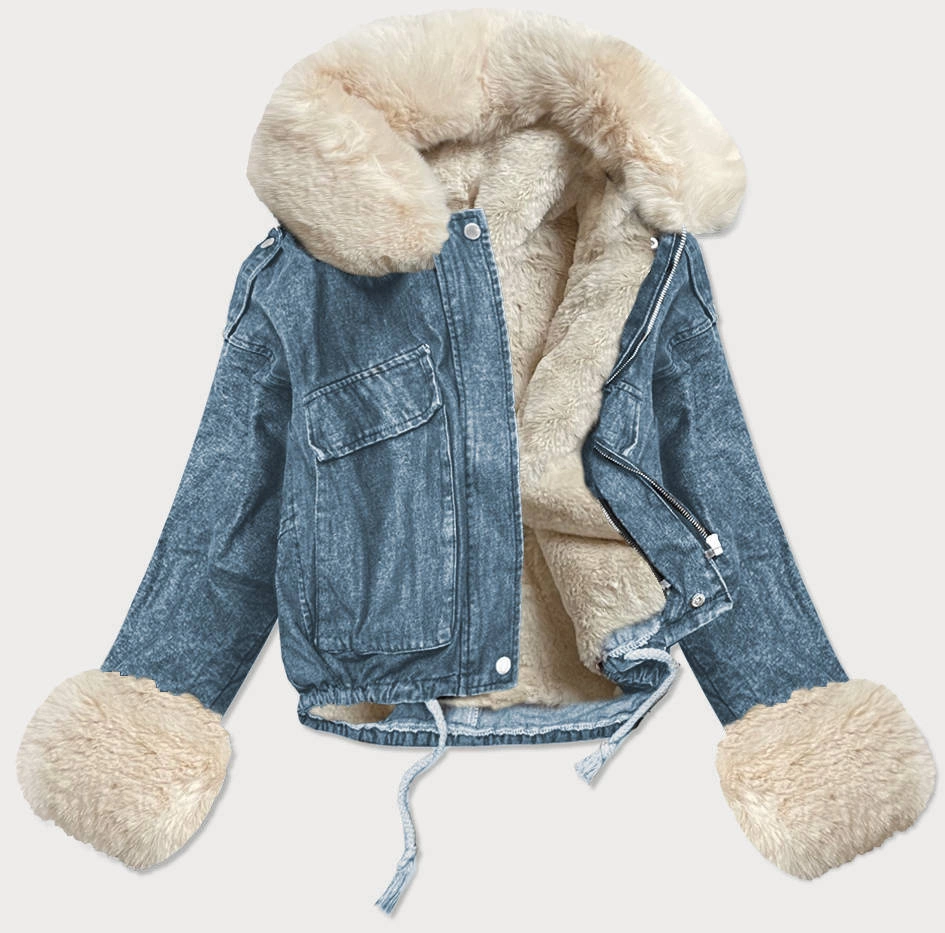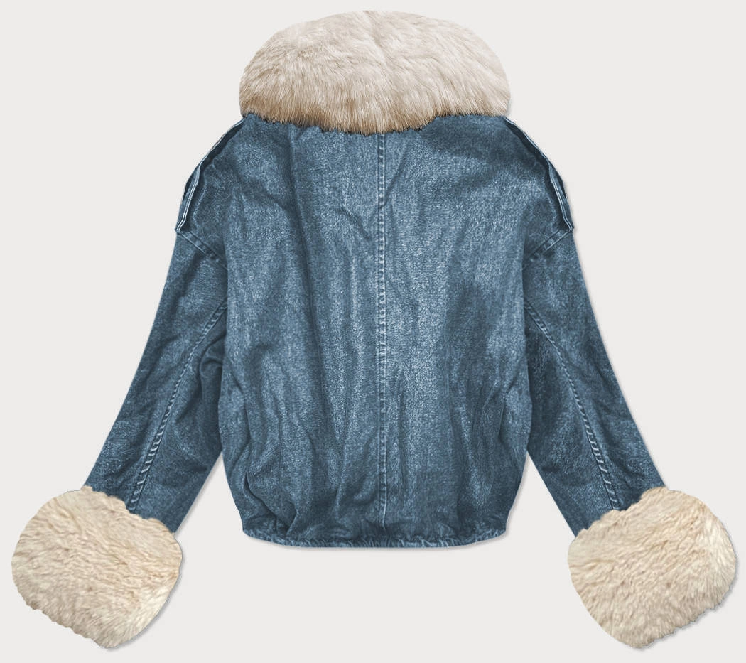 DAMSKA KURTKA JEANSOWA Z FUTRZANĄ PODPINKĄ NIEBIESKA-ECRU (9020#)