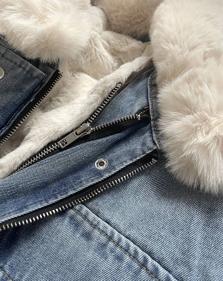Opinie o DAMSKA KURTKA JEANSOWA Z FUTRZANĄ PODPINKĄ NIEBIESKA-ECRU (9020#)