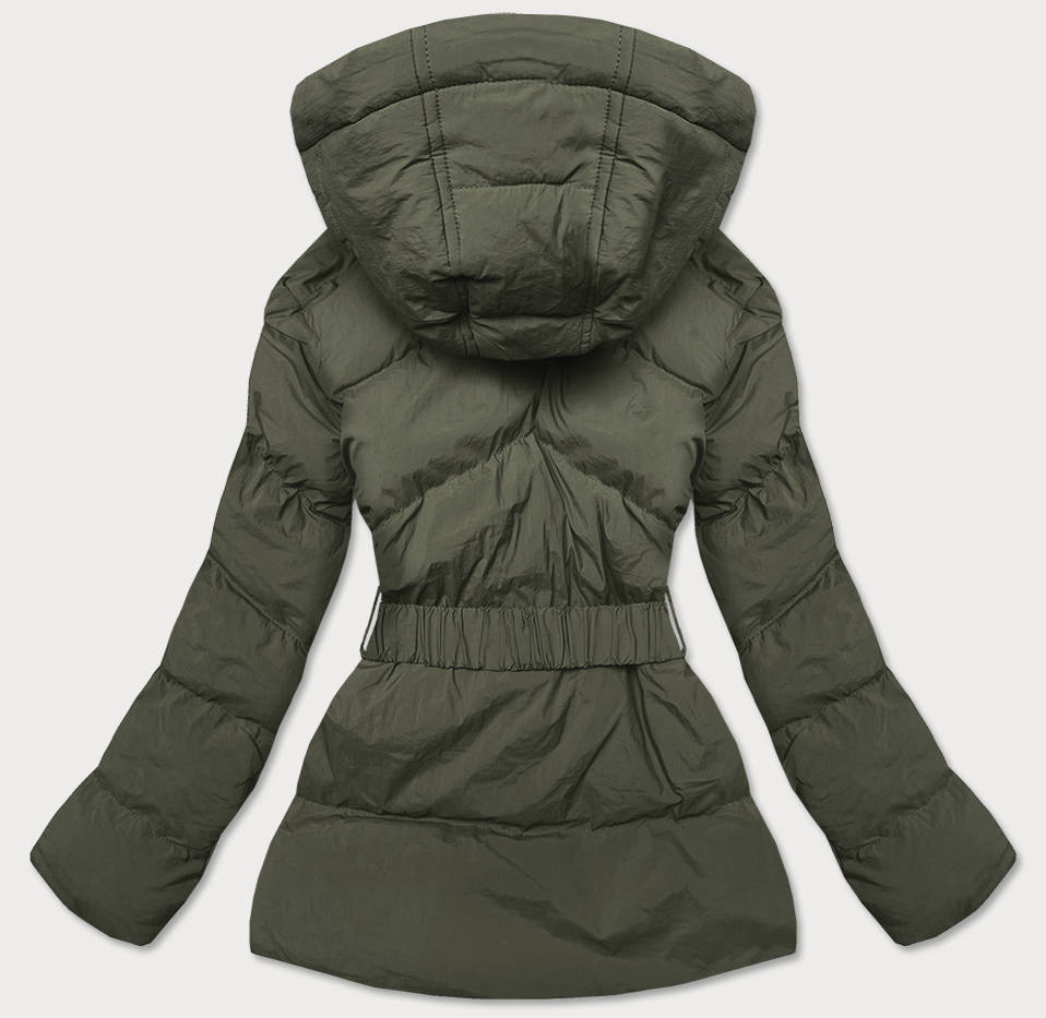 Pikowana kurtka przejściowa z paskiem khaki (23060-2)