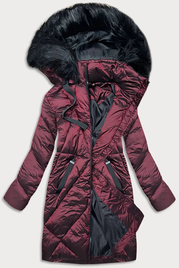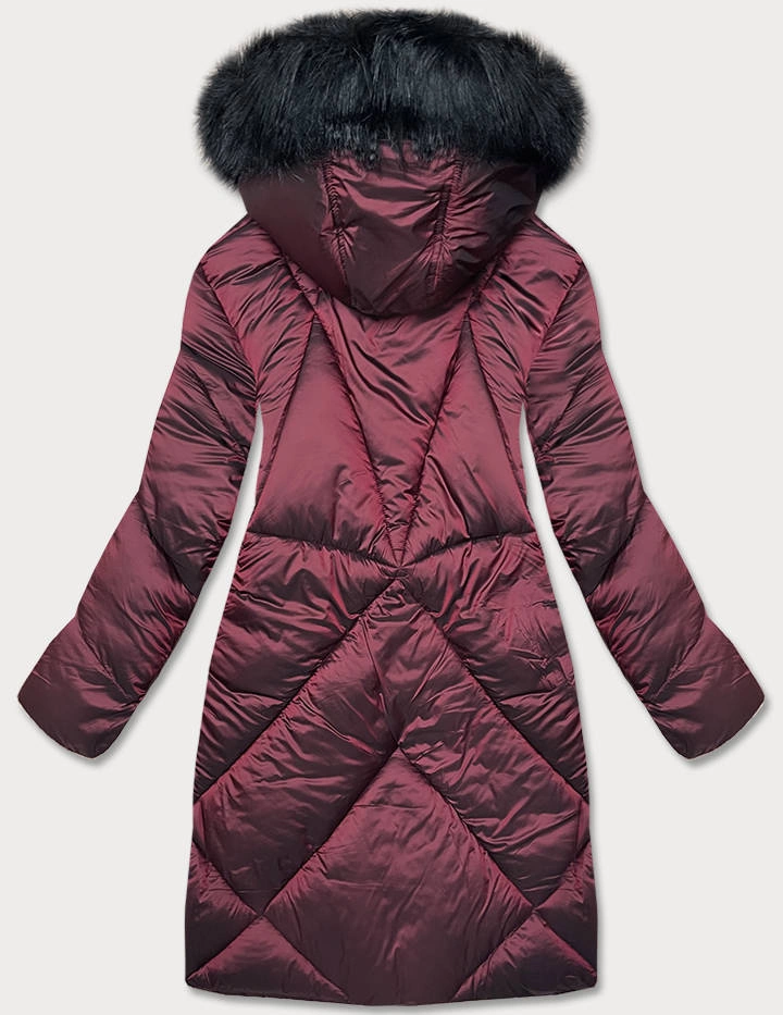 Długa kurtka zimowa damska bordowa (23070-2)