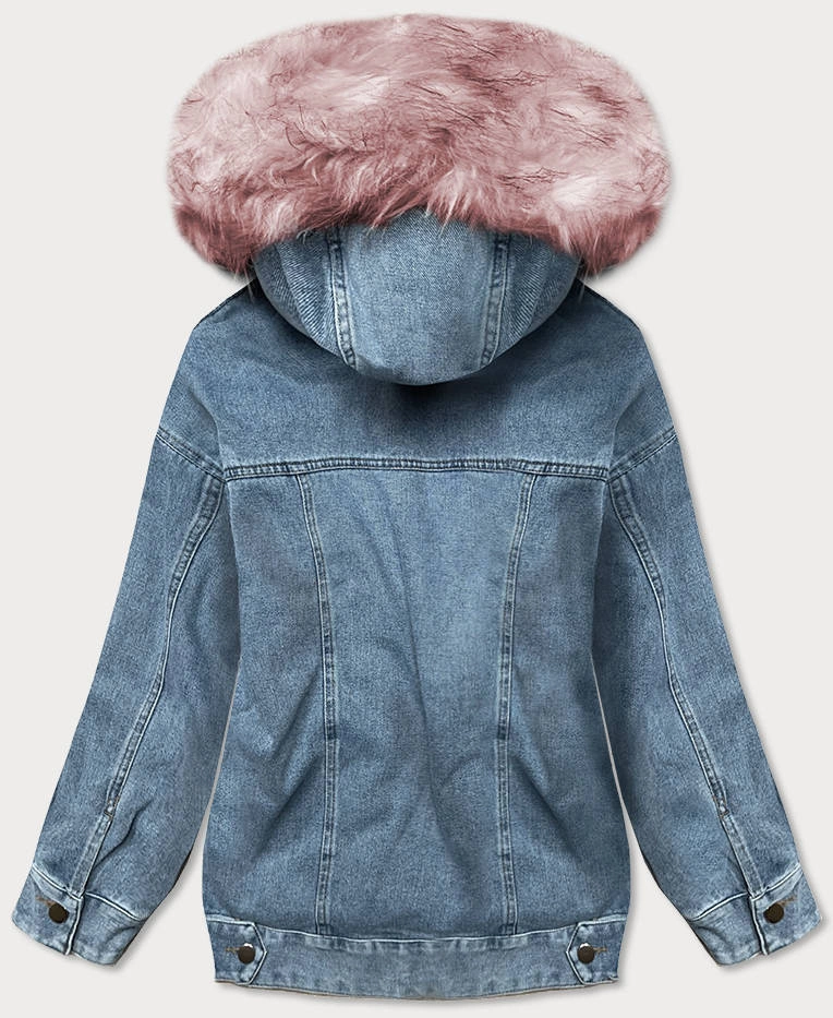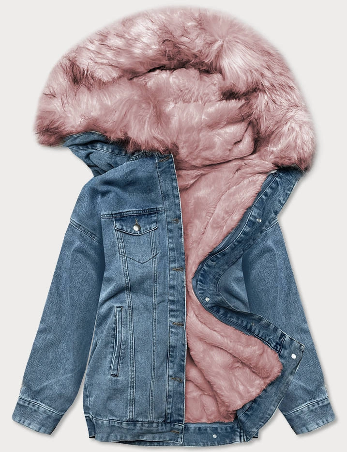 DAMSKA KURTKA JEANSOWA Z FUTRZANĄ PODPINKĄ NIEBIESKO-RÓŻOWA (BR9588-50081)