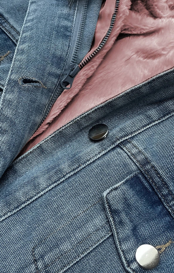 Opinie o DAMSKA KURTKA JEANSOWA Z FUTRZANĄ PODPINKĄ NIEBIESKO-RÓŻOWA (BR9588-50081)