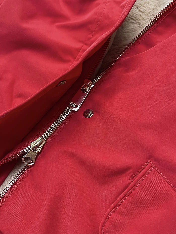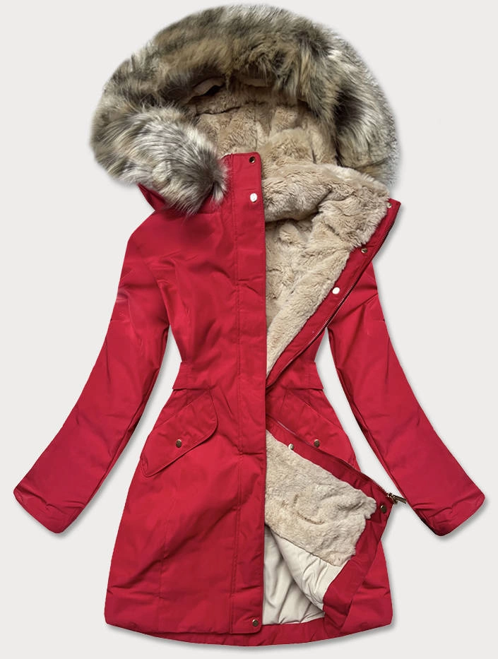 PARKA DAMSKA ZIMOWA NA MISIU CZERWONO-BEŻOWA (B2714-4)