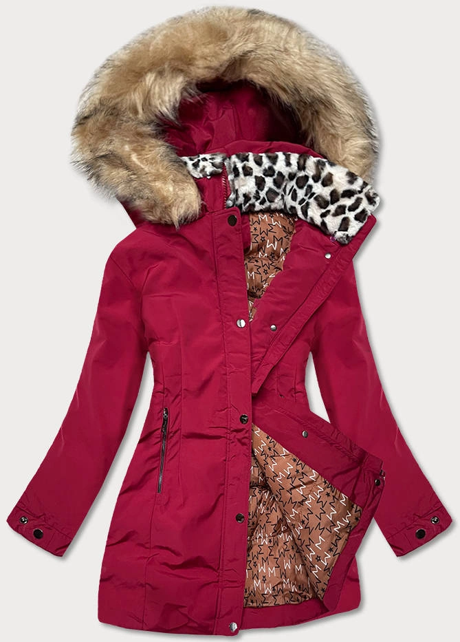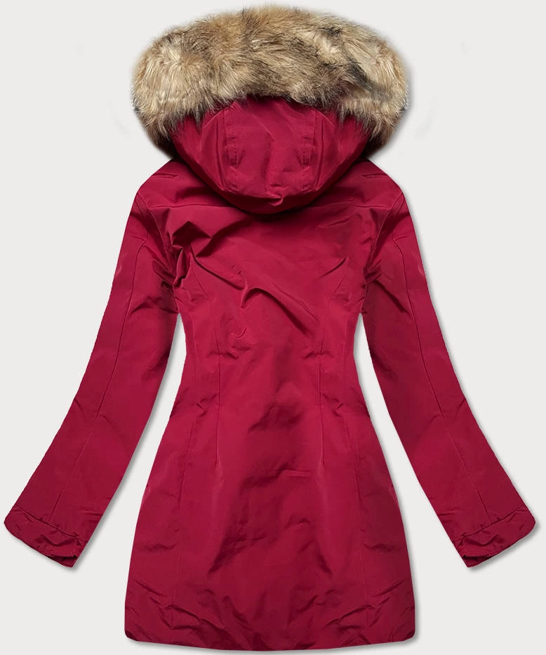 ZIMOWA KURTKA DAMSKA Z FUTRZANĄ STÓJKĄ CZERWONA (CAN-583BIG)