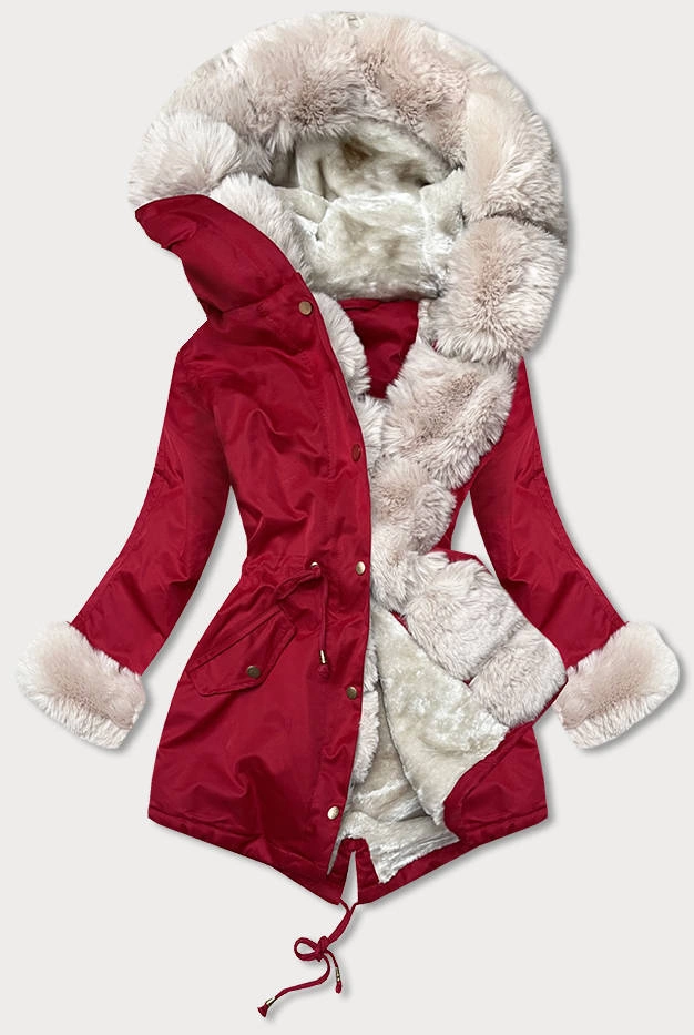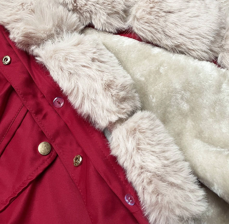 DAMSKA KURTKA PARKA NA FUTERKU CZERWONA (WM888)