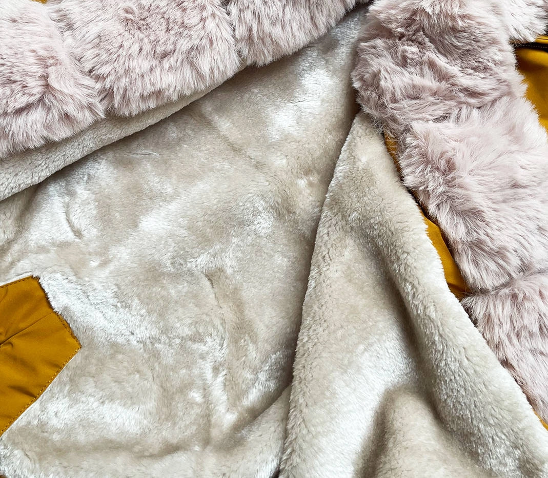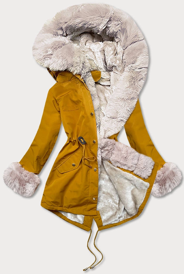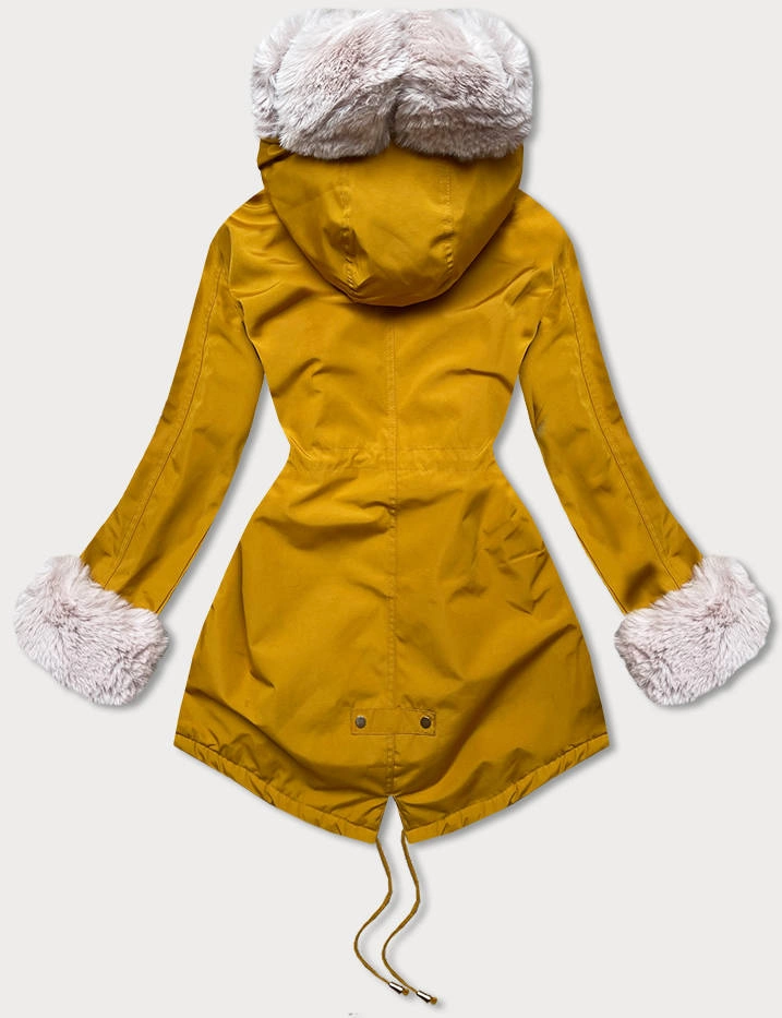 DAMSKA KURTKA PARKA NA FUTERKU MUSZTARDOWA (WM988)