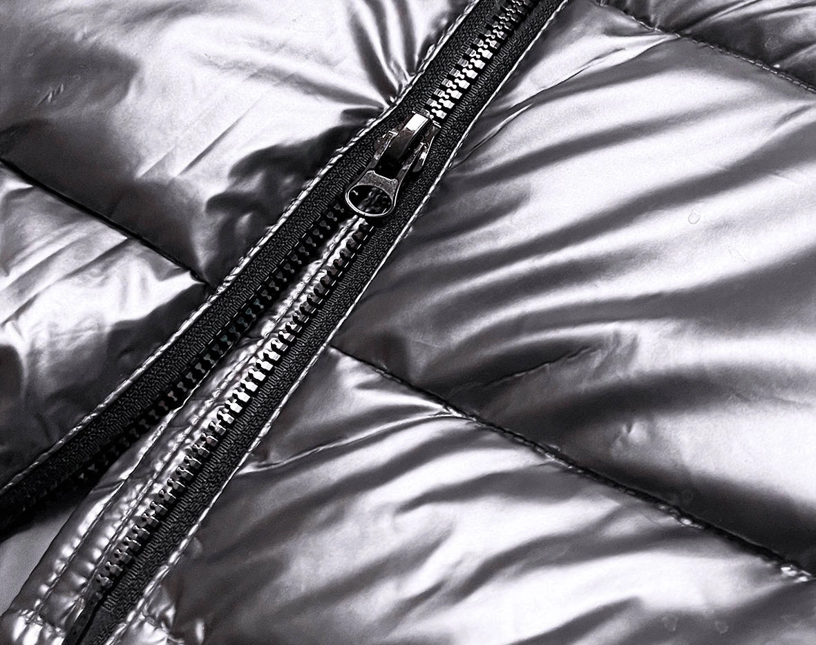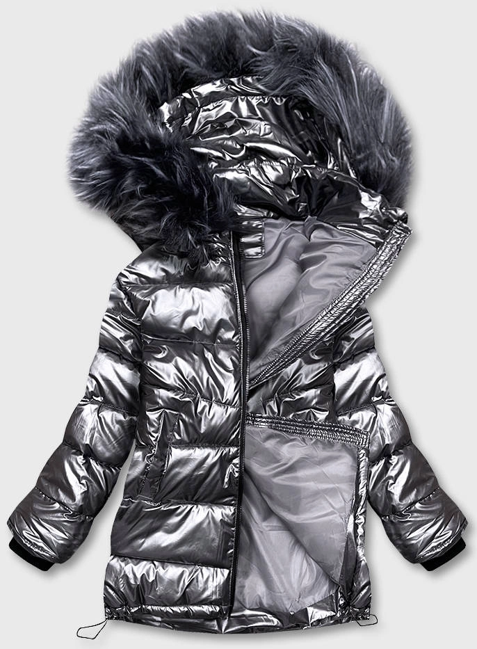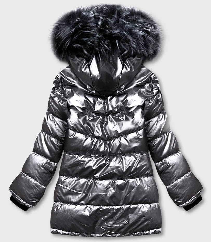 BŁYSZCZĄCA KURTKA DAMSKA ZIMOWA SZARA (HS-809)