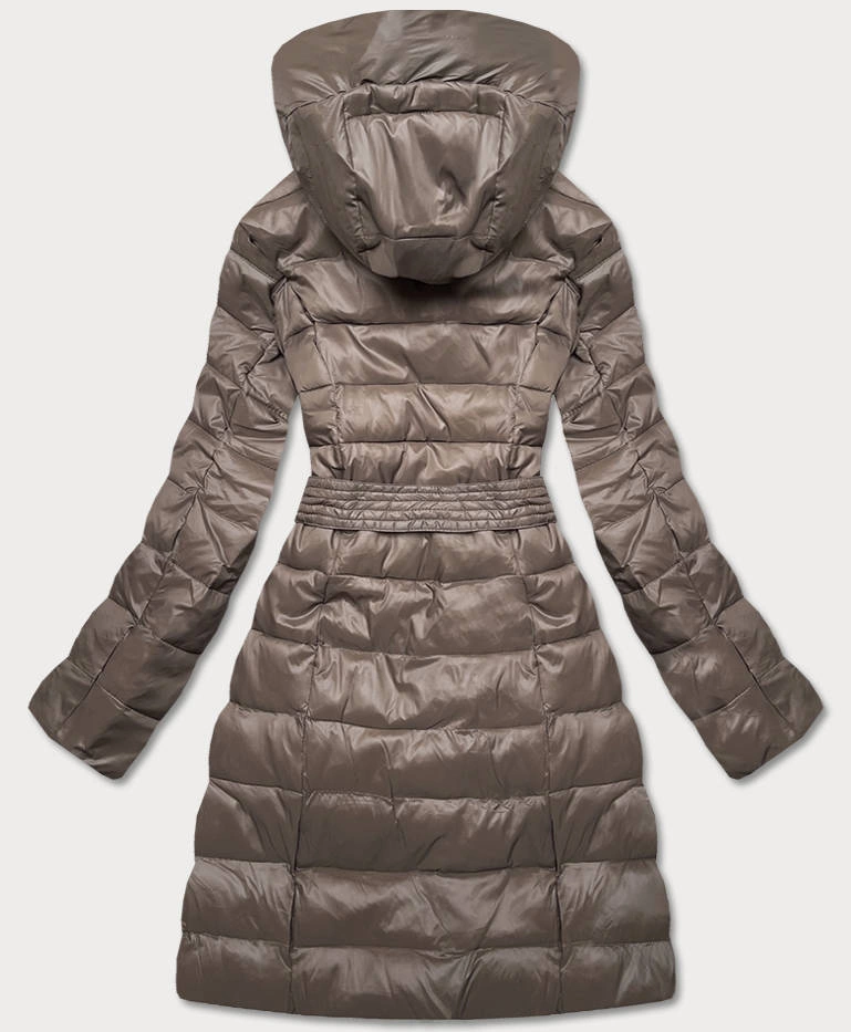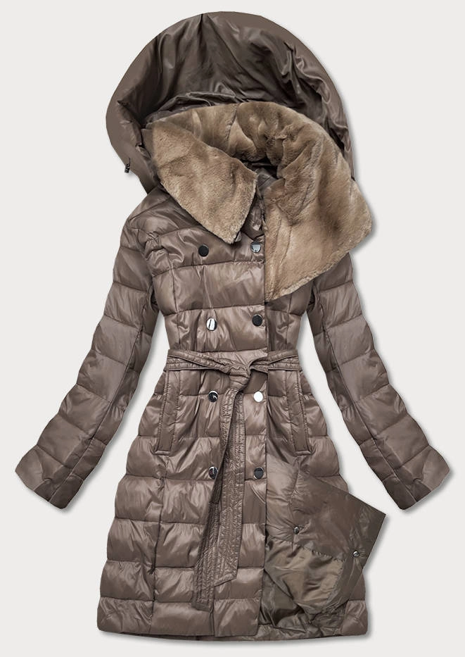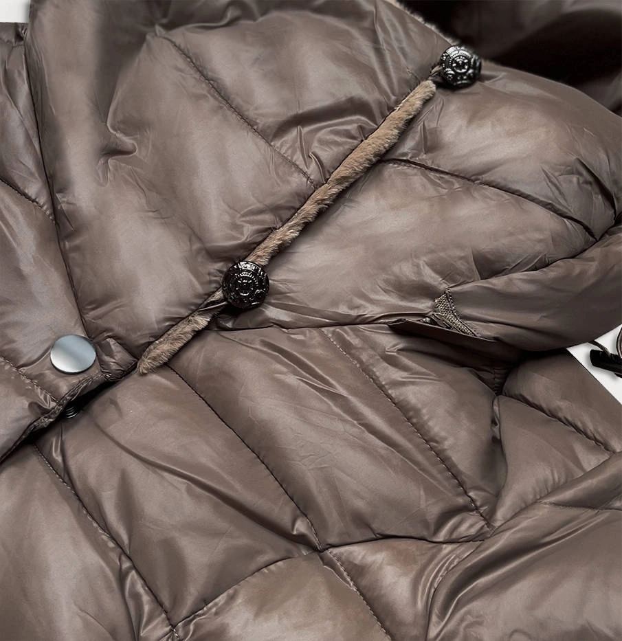 KURTKA ZIMOWA DAMSKA Z WYSOKĄ FUTRZNĄ STÓJKĄ CAPPUCCINO (J9-018)