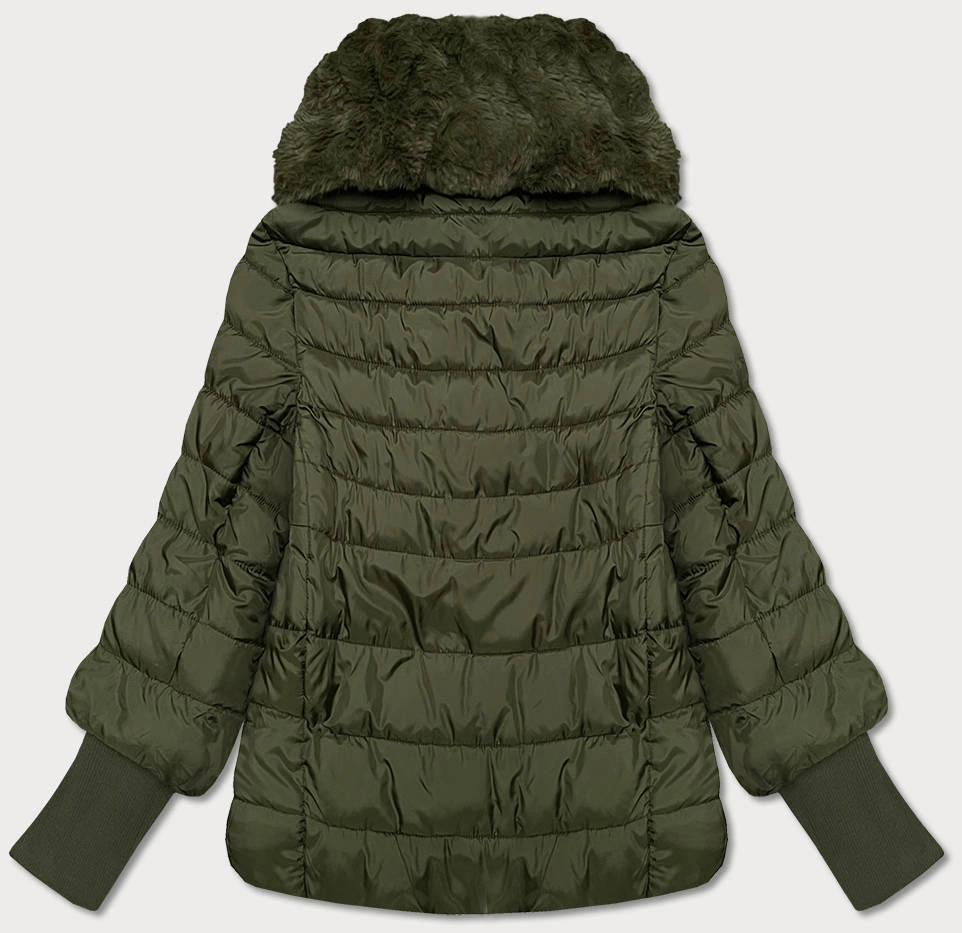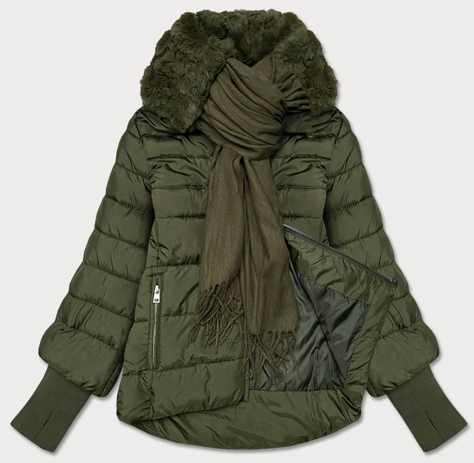 KURTKA DAMSKA Z FUTRZANYM SZALIKIEM KHAKI (1587)