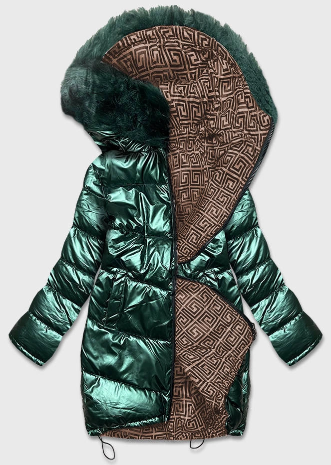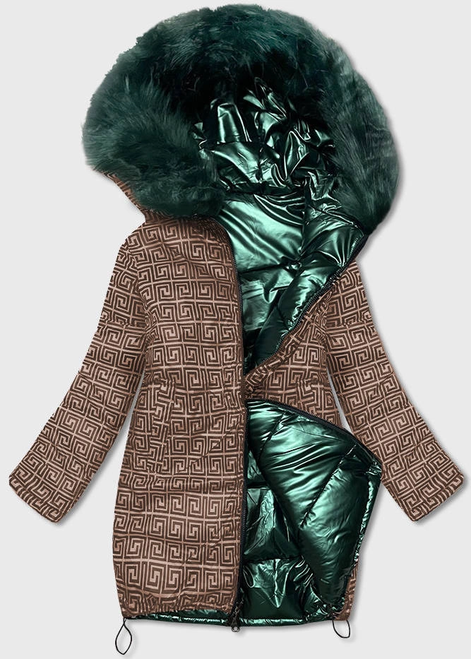DWUSTRONNA KURTKA DAMSKA ZIMOWA ZIELONO-BRĄZOWA (HS-807)
