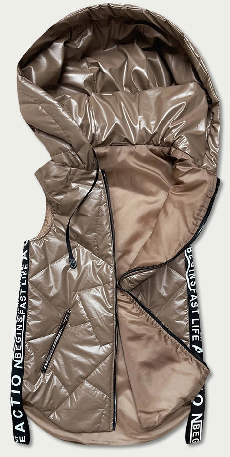 BEZRĘKAWNIK DAMSKI Z OZDOBNYMI TAŚMAMI KAKAOWY (B8011-12)