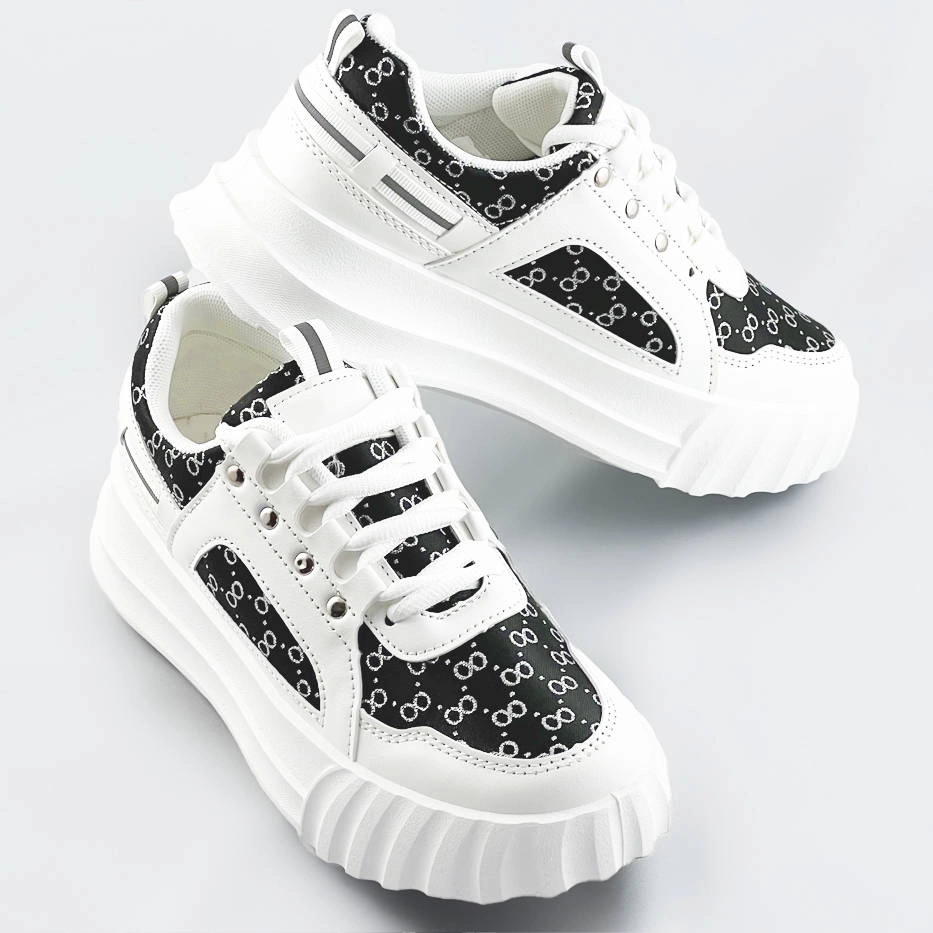Sportowe buty damskie z ozdobnym wzorem biało-czarne (la811)