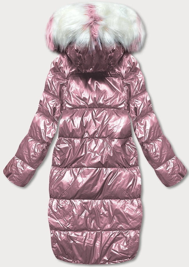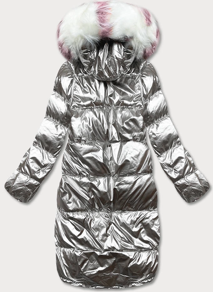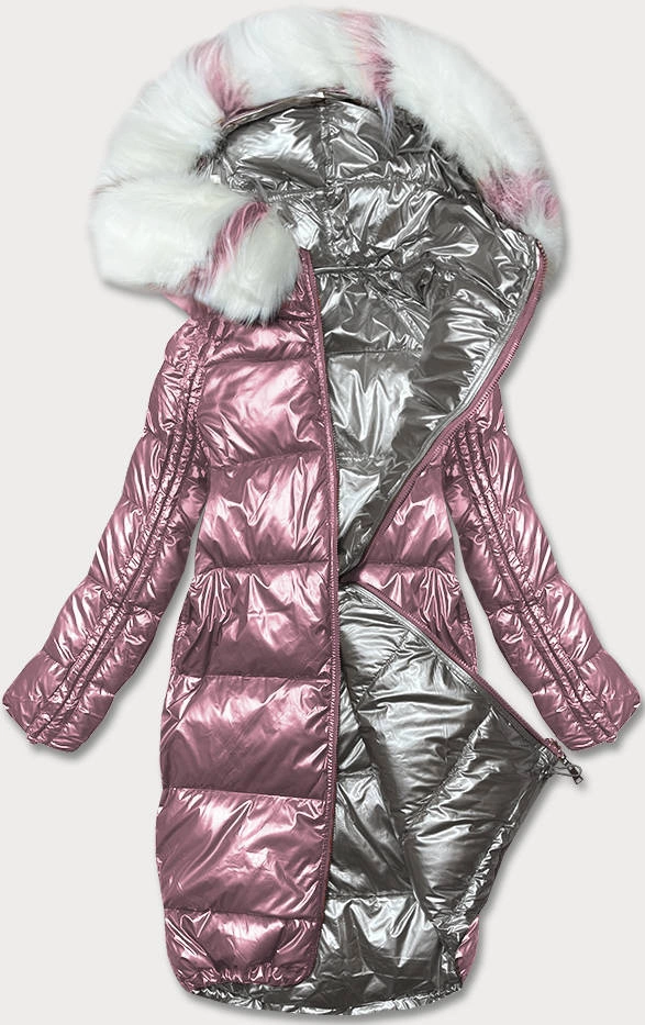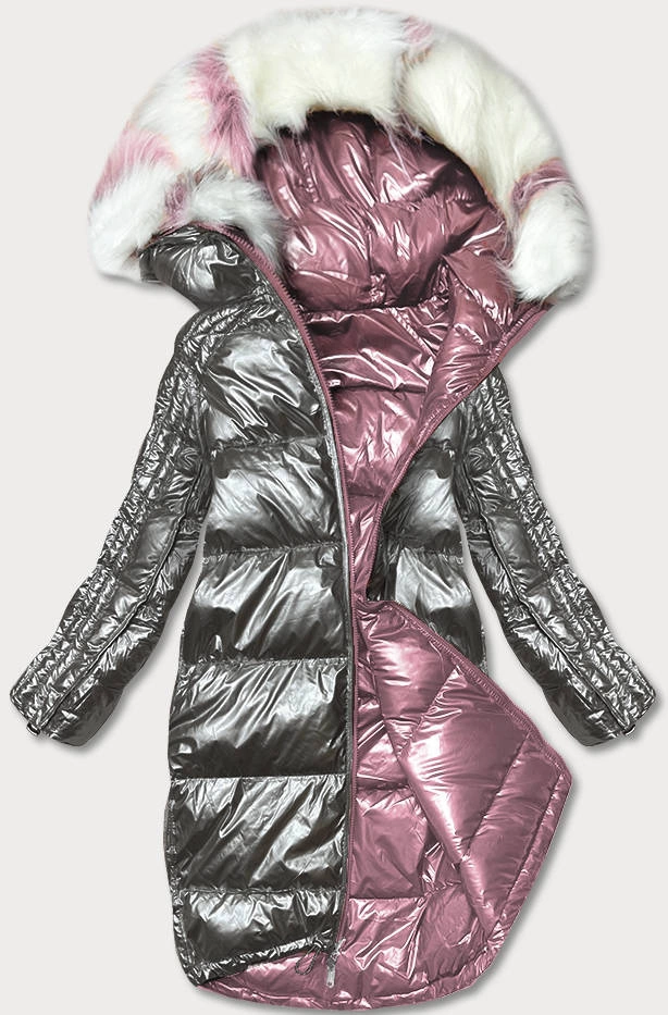 DWUSTRONNA METALICZNA KURTKA ZIMOWA RÓŻOWO-SZARA (P21-7901-52+61)