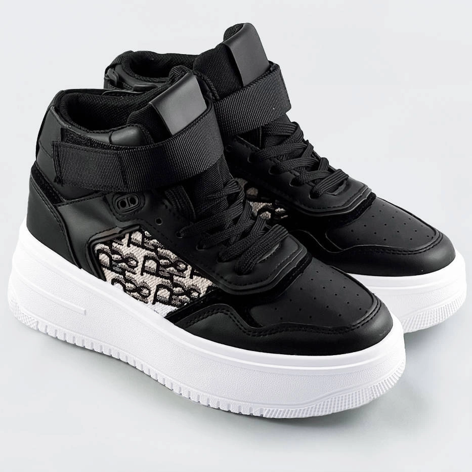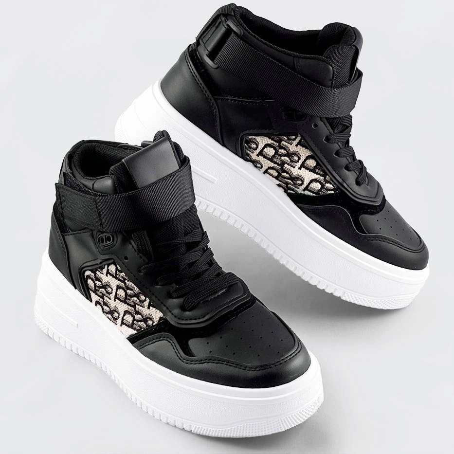 Wysokie sneakersy na grubej podeszwie czarne (ad-429)