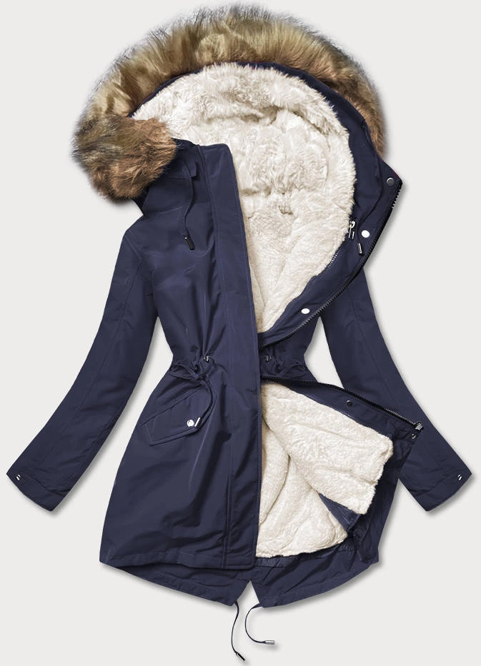 Ciepła kurtka zimowa damska granat/ecru (w629big)