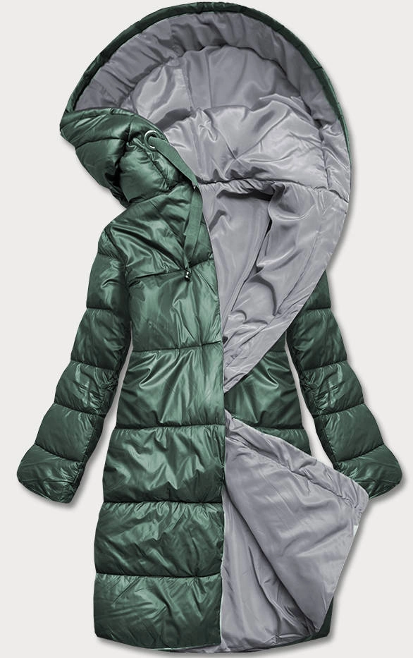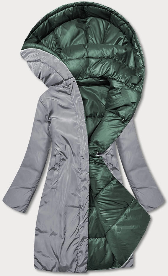 DŁUGA DWUSTRONNA KURTKA ZIMOWA ZIELONY/SZARY (L22-9852-33/61)