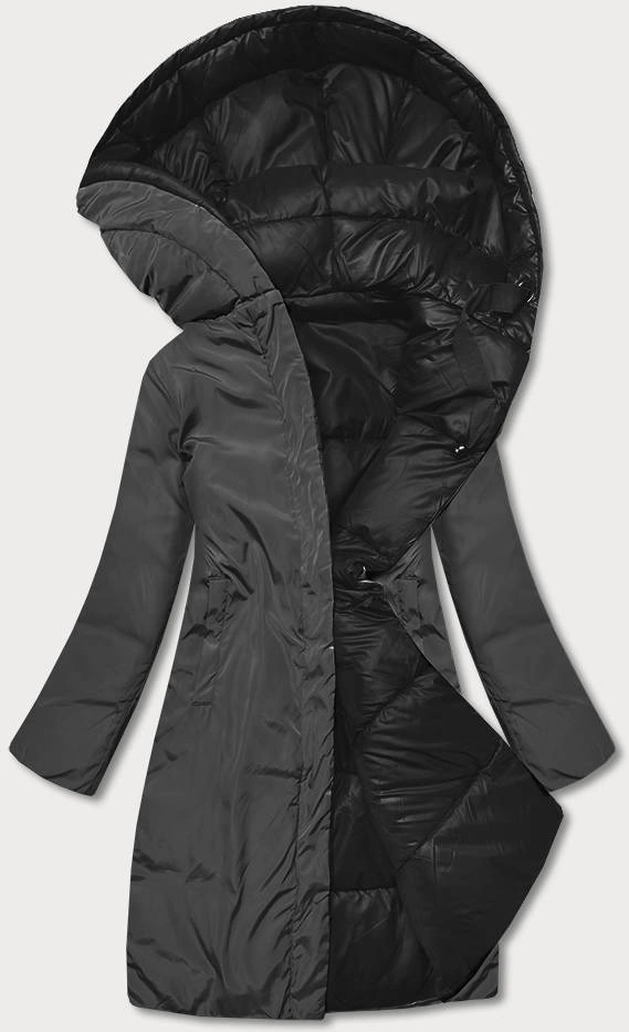 DŁUGA DWUSTRONNA KURTKA ZIMOWA CZARNY/GRAFIT (L22-9852-1/27)
