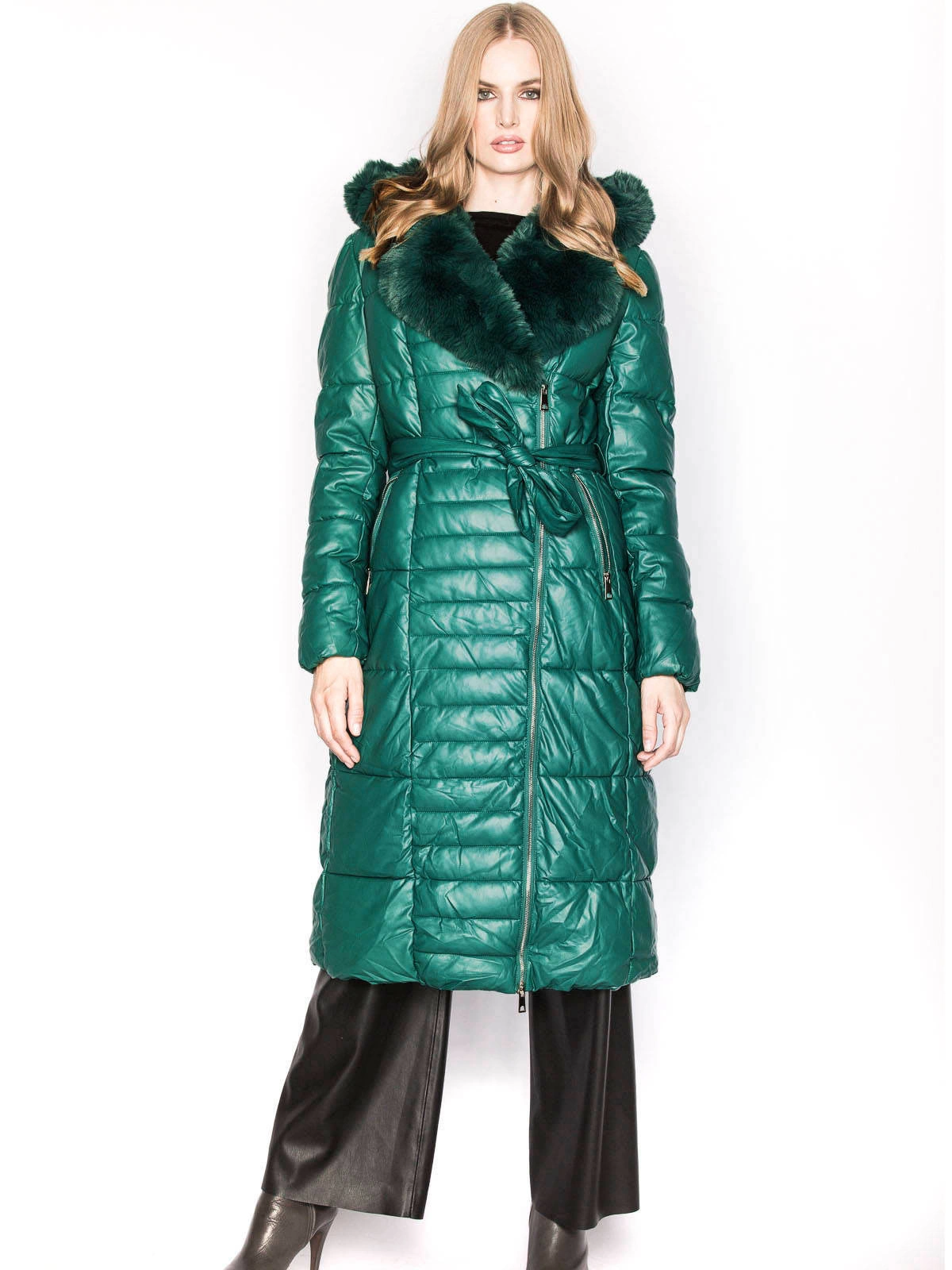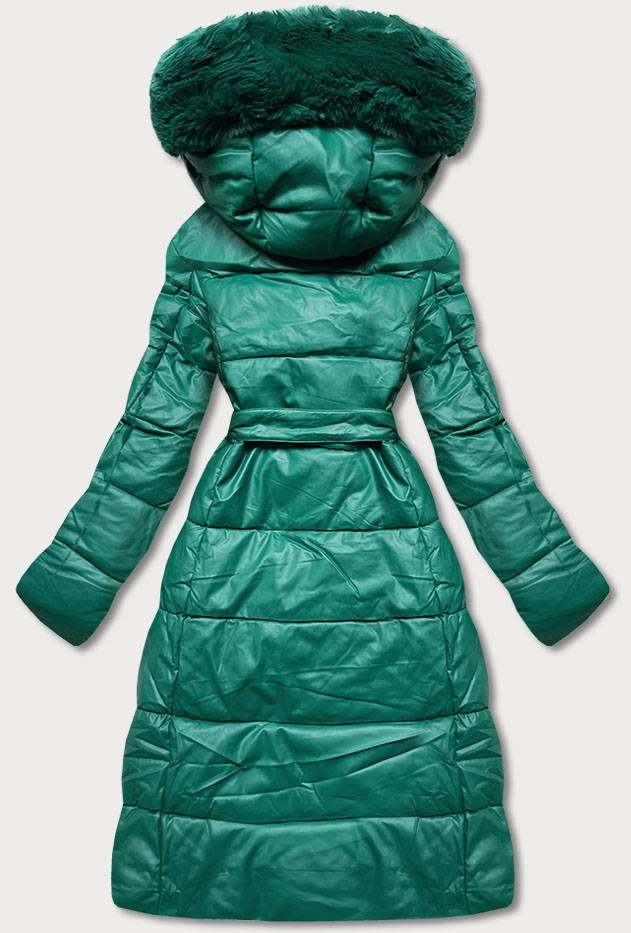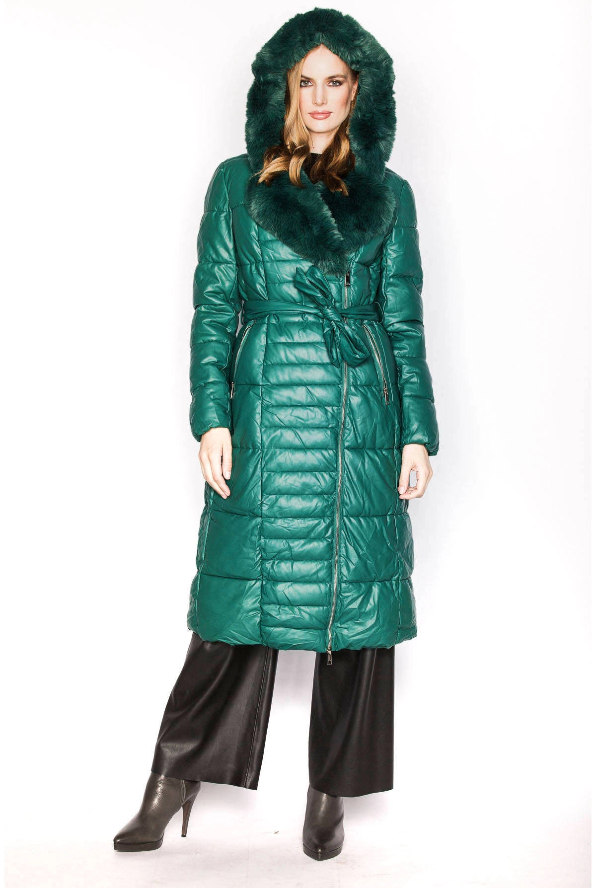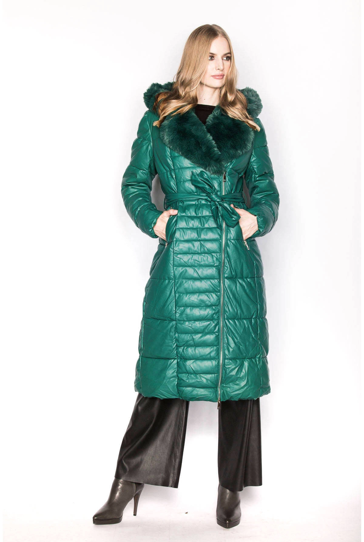 Kurtka damska z futrzanym kołnierzem zielona (ag6-28)