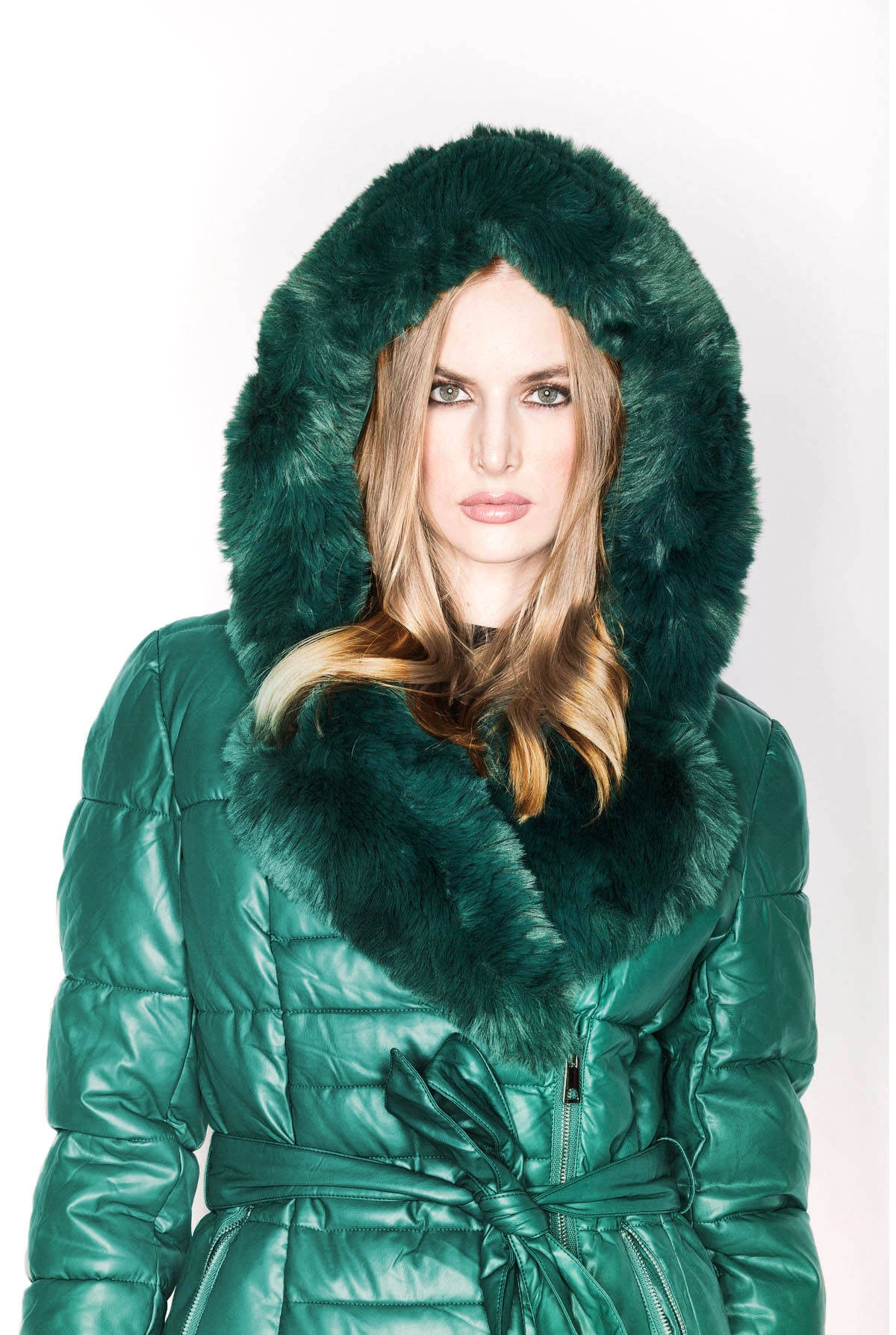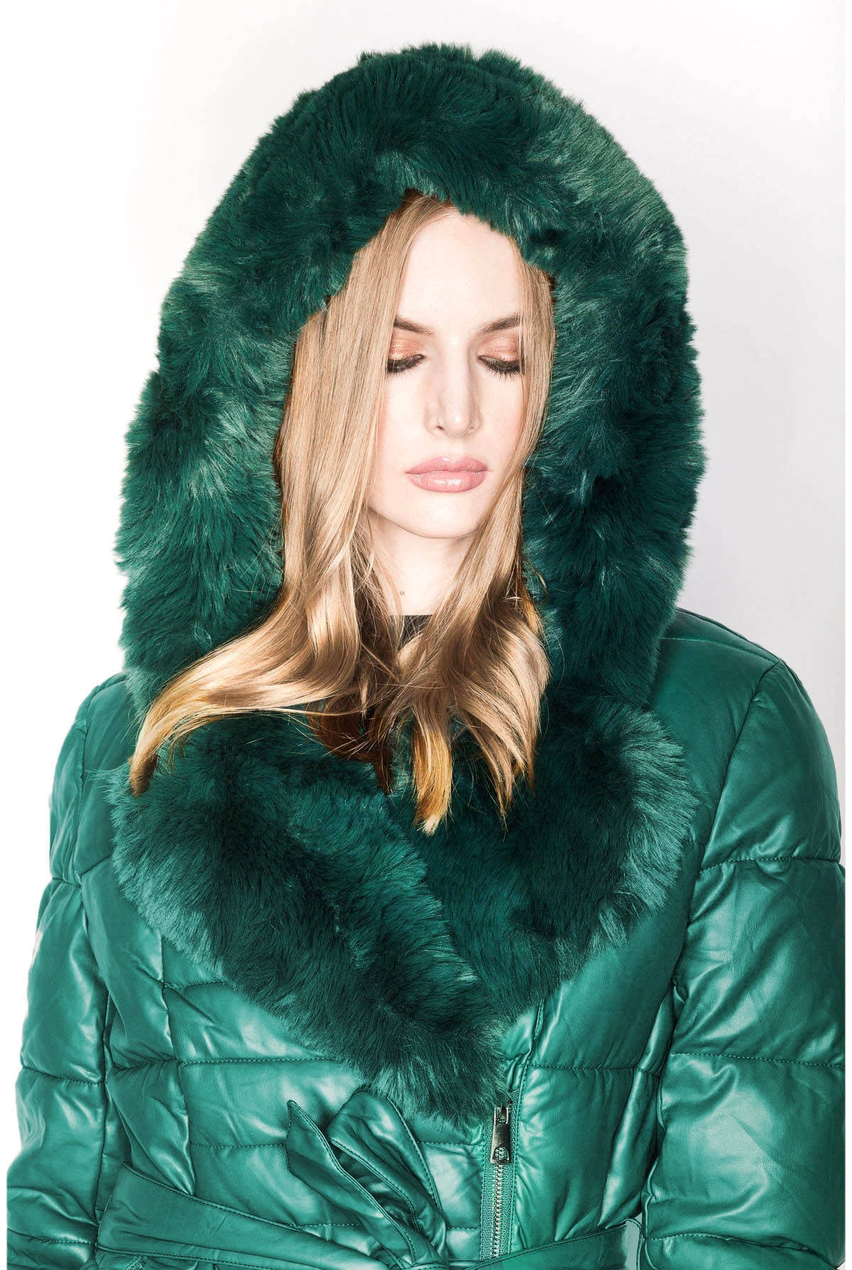 Opinie o Kurtka damska z futrzanym kołnierzem zielona (ag6-28)